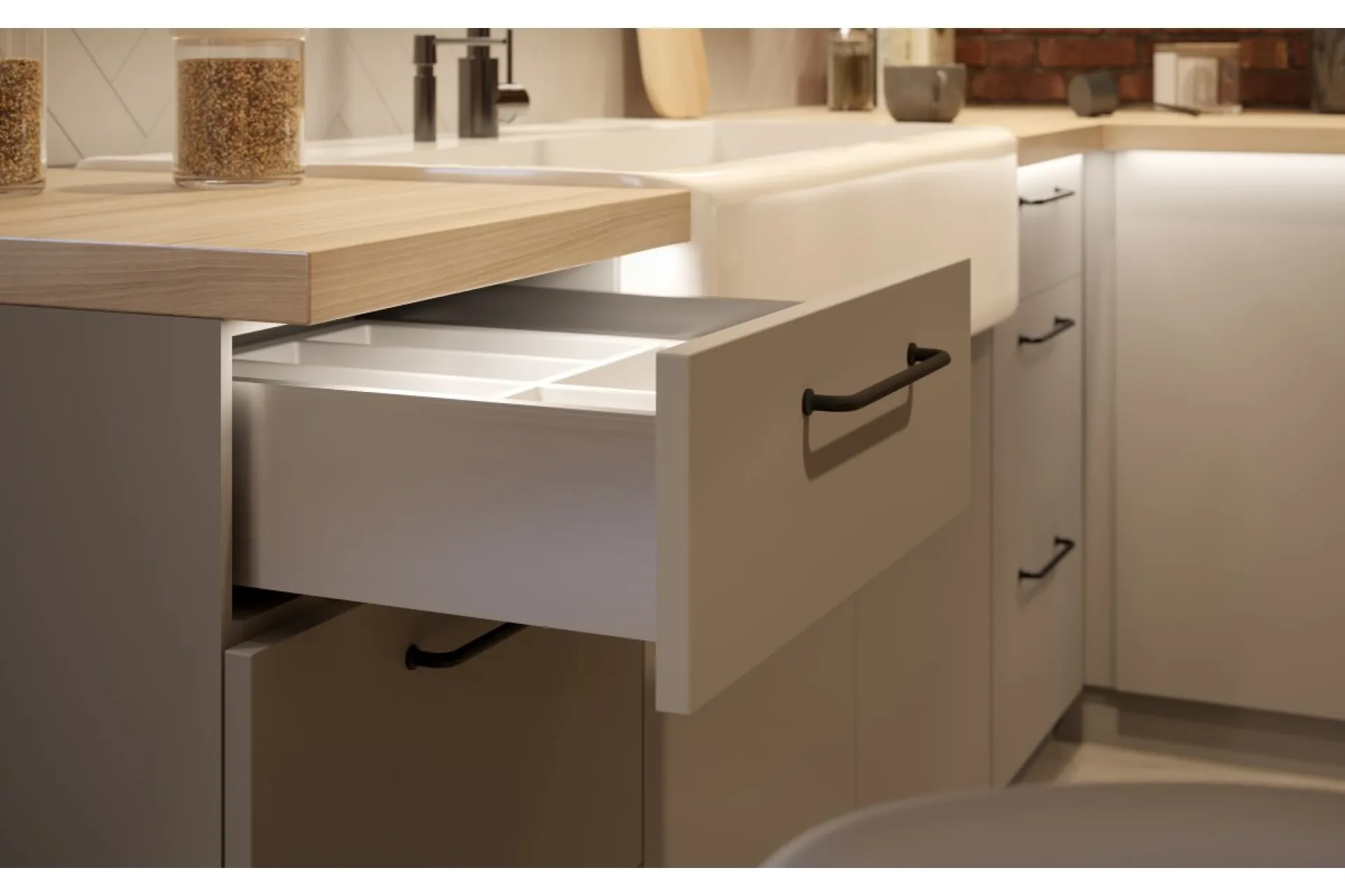 Zásuvka Axis Pro má vysokú odolnosť certifikovanú na 60 000 cyklov. Poskytuje plný výsuv v dĺžkach od 250 do 600 mm a zatvárací mechanizmus zabezpečuje tichú prevádzku a jemné dovieranie zásuvky. Vďaka piatim výškovým variantom sa dokonale prispôsobí vašej kuchyni, pričom bočná strana zásuvky so šírkou iba 14 mm umožňuje maximálne využitie vnútorného priestoru nábytku. Zásuvka unesie až 40 kg rôznych výrobkov a ponúka možnosť vnútorného výsuvu. Inštalácia je jednoduchá vďaka pohodlnému nastaveniu zvnútra, možnosti nastavenia náklonu a horizontálneho nastavenia v rozsahu ±2 mm. Zásuvka je kompatibilná s rôznymi systémami organizácie priestoru, príborovými vložkami, protišmykovými rohožami a triedičmi odpadu.