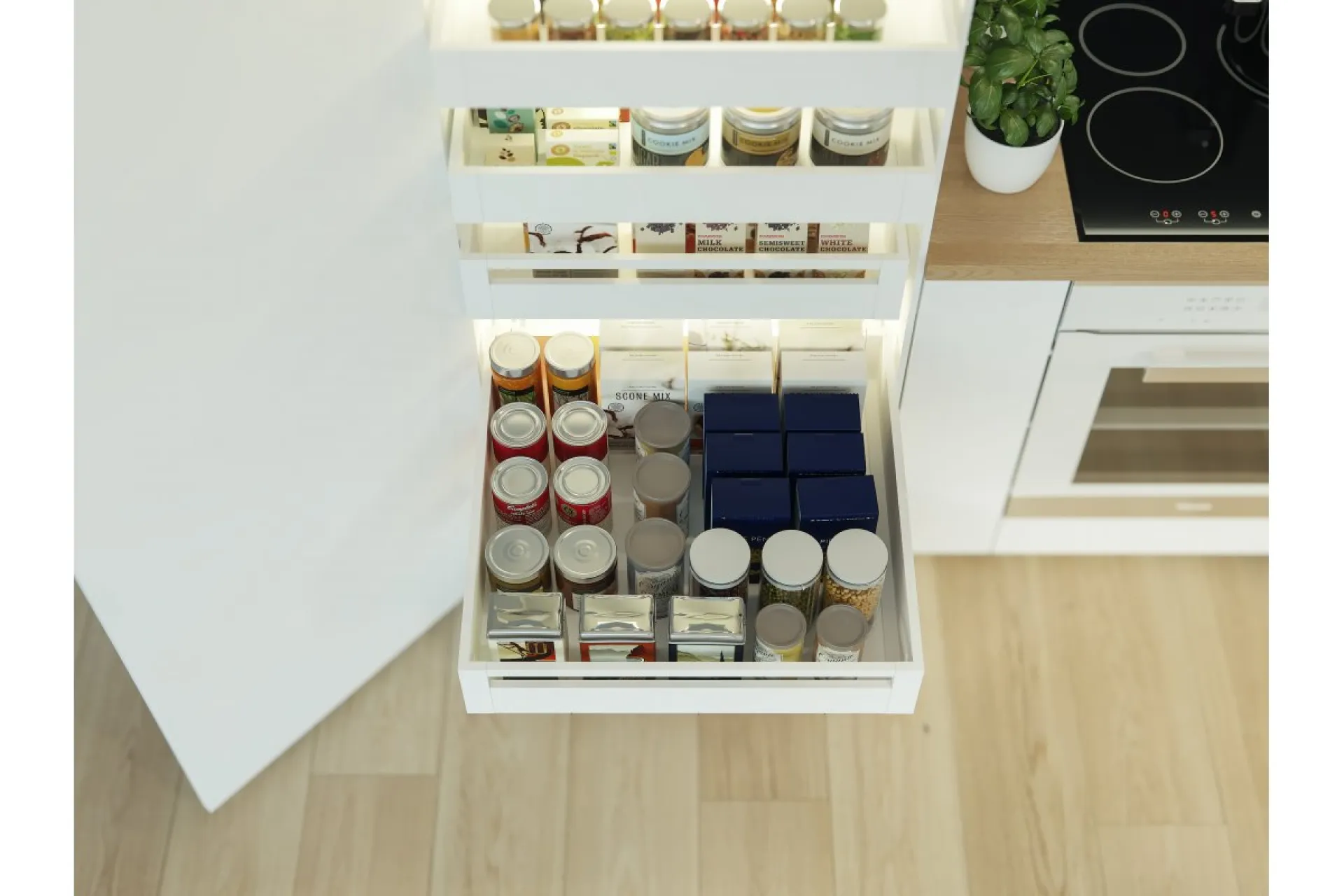 Zásuvka Axis Pro má vysokú odolnosť certifikovanú na 60 000 cyklov. Poskytuje plný výsuv v dĺžkach od 250 do 600 mm a zatvárací mechanizmus zabezpečuje tichú prevádzku a jemné dovieranie zásuvky. Vďaka piatim výškovým variantom sa dokonale prispôsobí vašej kuchyni, pričom bočná strana zásuvky so šírkou iba 14 mm umožňuje maximálne využitie vnútorného priestoru nábytku. Zásuvka unesie až 40 kg rôznych výrobkov a ponúka možnosť vnútorného výsuvu. Inštalácia je jednoduchá vďaka pohodlnému nastaveniu zvnútra, možnosti nastavenia náklonu a horizontálneho nastavenia v rozsahu ±2 mm. Zásuvka je kompatibilná s rôznymi systémami organizácie priestoru, príborovými vložkami, protišmykovými rohožami a triedičmi odpadu.