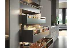 Zásuvka Axis Pro má vysokú odolnosť certifikovanú na 60 000 cyklov. Poskytuje plný výsuv v dĺžkach od 250 do 600 mm a zatvárací mechanizmus zabezpečuje tichú prevádzku a jemné dovieranie zásuvky. Vďaka piatim výškovým variantom sa dokonale prispôsobí vašej kuchyni, pričom bočná strana zásuvky so šírkou iba 14 mm umožňuje maximálne využitie vnútorného priestoru nábytku. Zásuvka unesie až 40 kg rôznych výrobkov a ponúka možnosť vnútorného výsuvu. Inštalácia je jednoduchá vďaka pohodlnému nastaveniu zvnútra, možnosti nastavenia náklonu a horizontálneho nastavenia v rozsahu ±2 mm. Zásuvka je kompatibilná s rôznymi systémami organizácie priestoru, príborovými vložkami, protišmykovými rohožami a triedičmi odpadu.