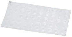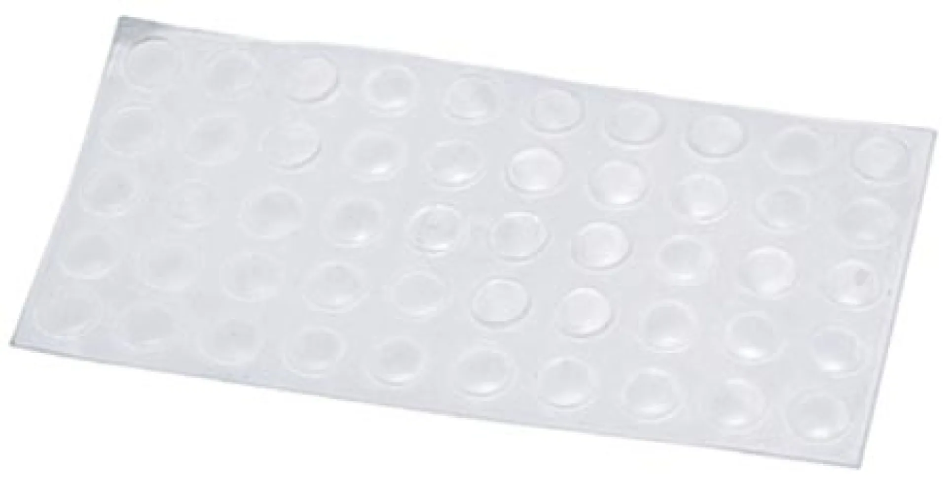 Plastikové samolepiace čočky, znižujúce hluk pri zatváraní dvierok. Výška 1,6mm, priemer 8mm. 1ks zahrňuje 50 šošoviek. Farba - transparentná.