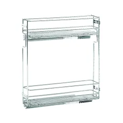 Drôtený kôš s dvomi policami pre skrinku 150 mm. Bočný plnovýsuv s dotlmením (Hettich) pre montáž na ľavú stenu korpusu.