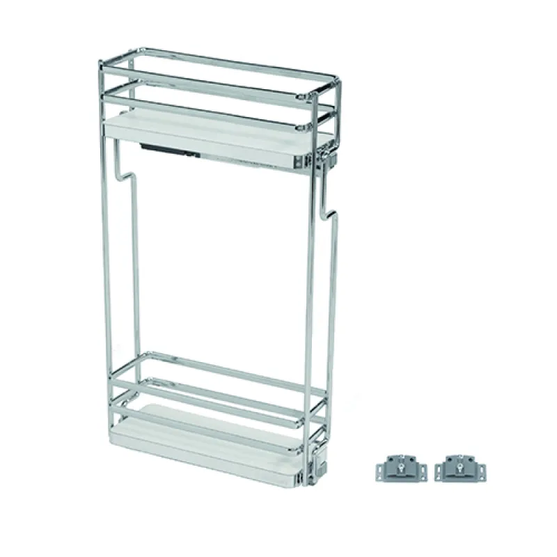 Plytký bočný dvojkôš z radu Galaxy do horných, prípadne kúpeľňových skriniek. Pre šírku korpusu 150 mm, minimálnu čistú hĺbku 300 mm a výšku 684 mm. Oválny pochrómovaný drôt s bielym plným dnom. Montáž na ľavú stranu korpusu. Súčasťou balenia je aj čelné uchytenie s nastavením čela v troch smeroch. Skrytý plnovýsuv s tlmením.