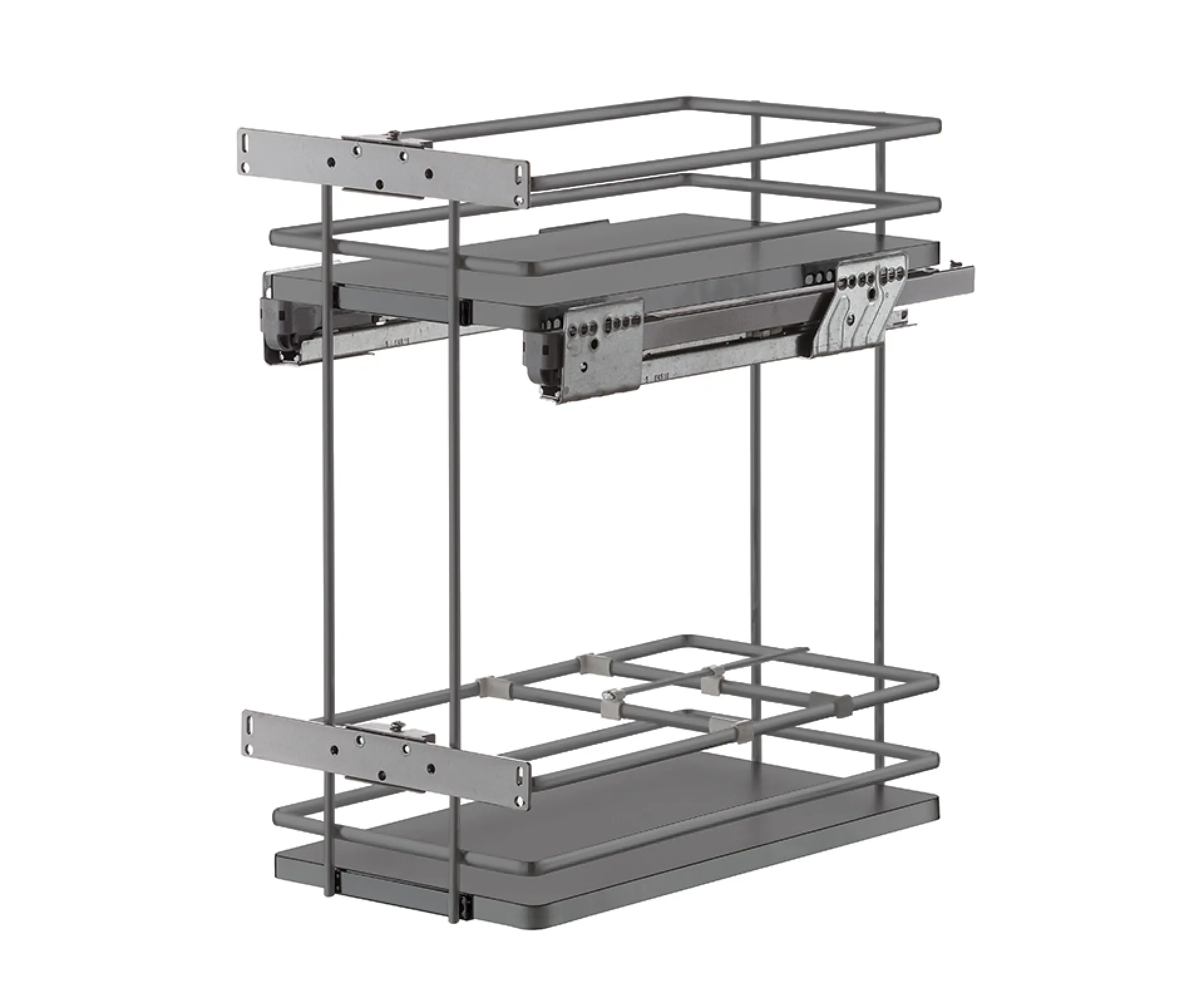 Dvojkôš z rady Galaxy s bočným vedením (výsuv vľavo i vpravo) pre 300 mm korpus. Oválný pochromovaný drôt s plným dnom. V balení vrátane čelného uchytenia s nastavením čela v troch smeroch.