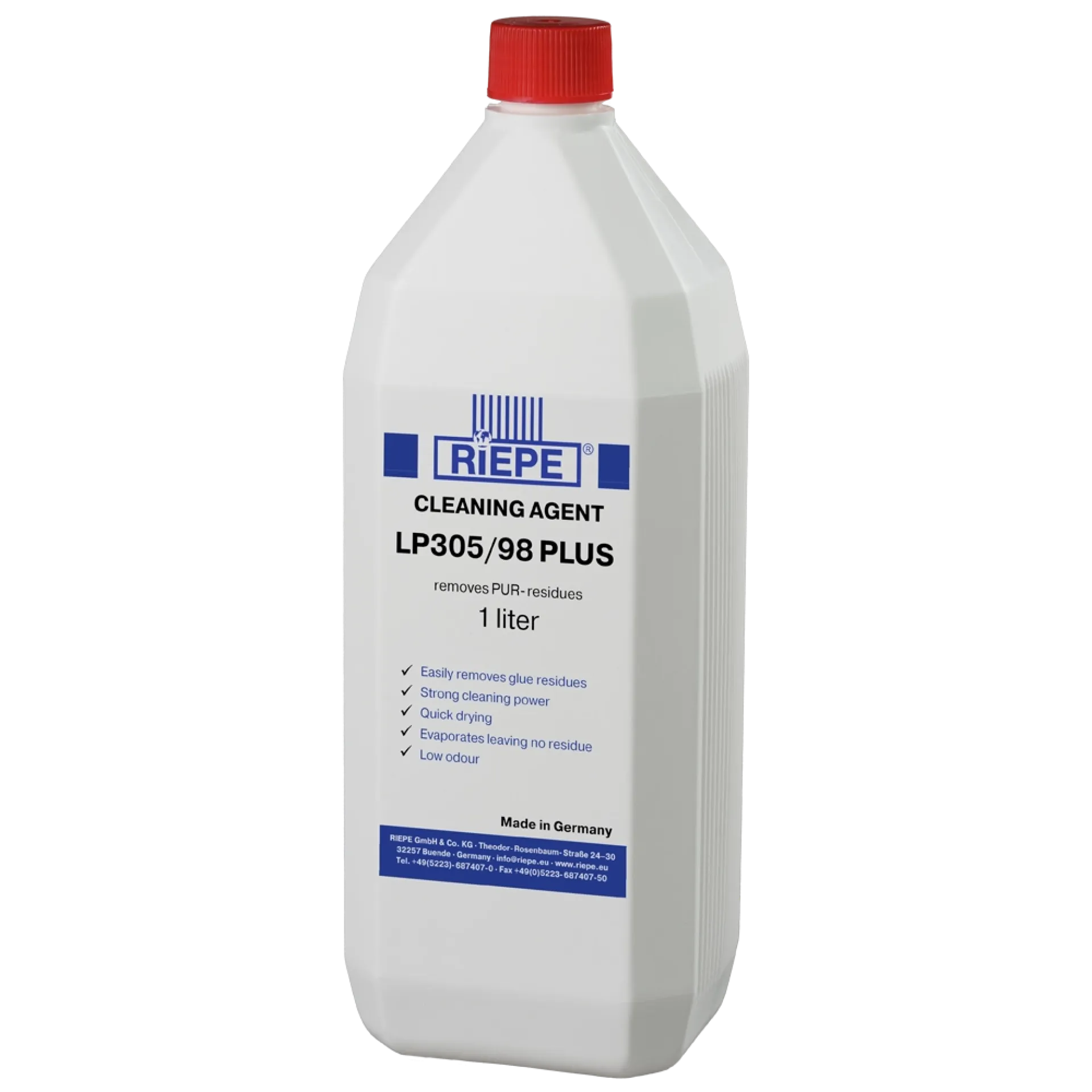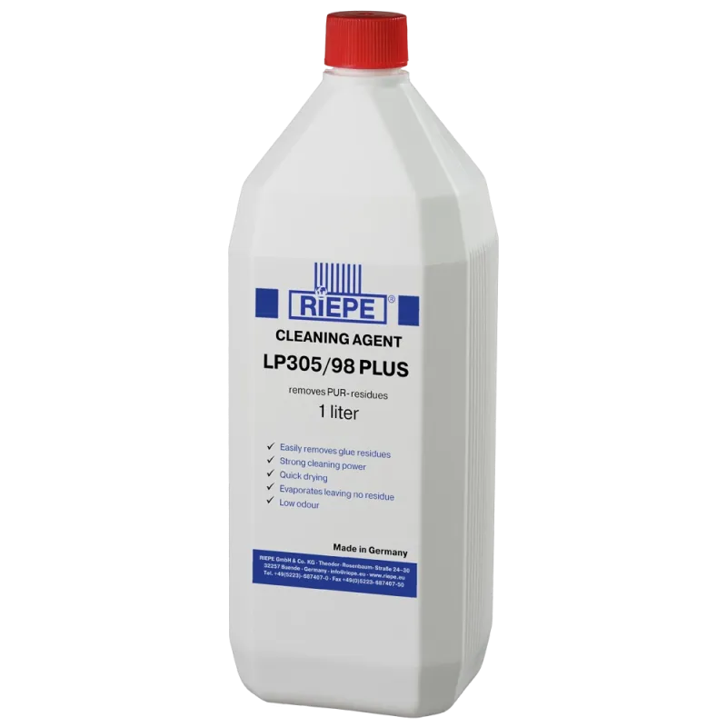 RIEPE LP 305 je univerzálna čistiaca zmes. Určená pre ručnú aplikáciu, pri dodržiavaní bezpečnostných opatrení: rukavice -vetranie - respirátor. Zmes odstraňuje z plastových povrchov a laminátov DTD zvyšky tavného lepidla, tuhy, mastnoty. Bez obsahu benzénov a hexánov. Rýchlo sa odparuje a nezanecháva zbytky nečistôt na čistenom povrchu.