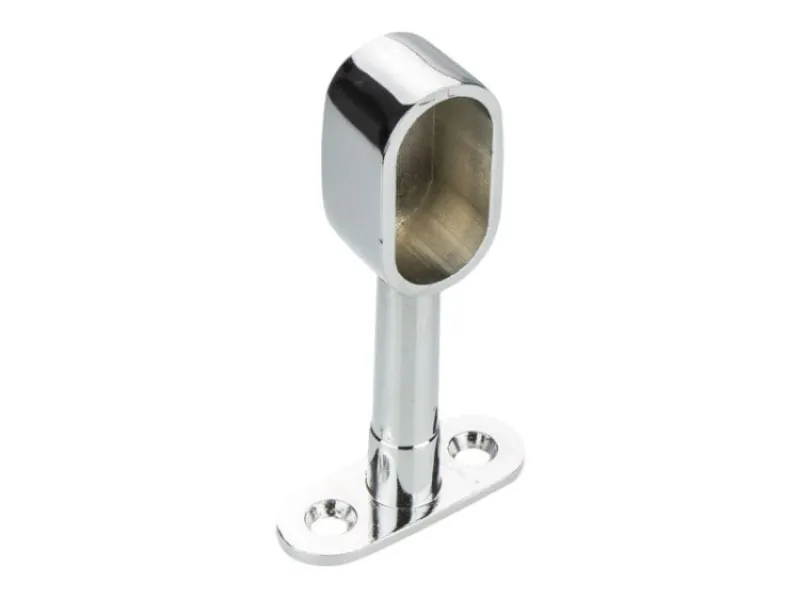 Dištančný koncový držiak MN-224 pre oválnu rúrku 15×30 mm s nastaviteľnou výškou 8,1–12 cm – Chrómovaný