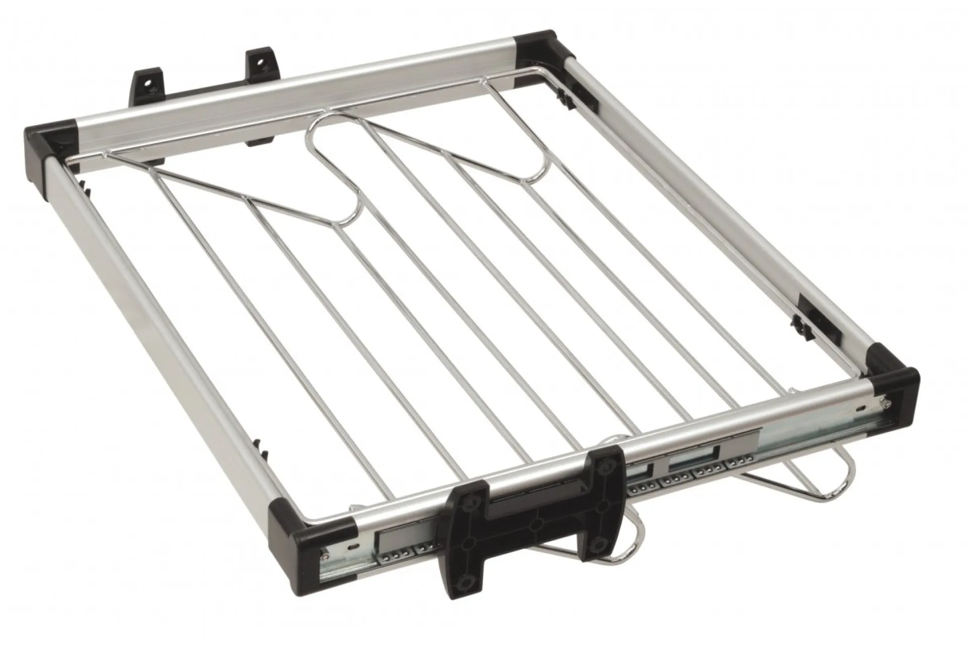 Výsuvný kôš na obuv. Potrebná svetlosť (vnútorná šírka) korpusu je 564 - 581 mm. Hĺbka koša je 465 mm. Výška koša je 157 mm.