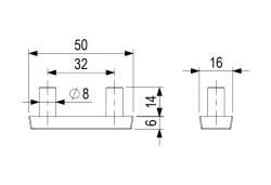 Narážací klzák s rozostupom 32 mm. Dĺžka kolíka 14 mm s priemerom 8 mm. Výška klzáku 6 mm.