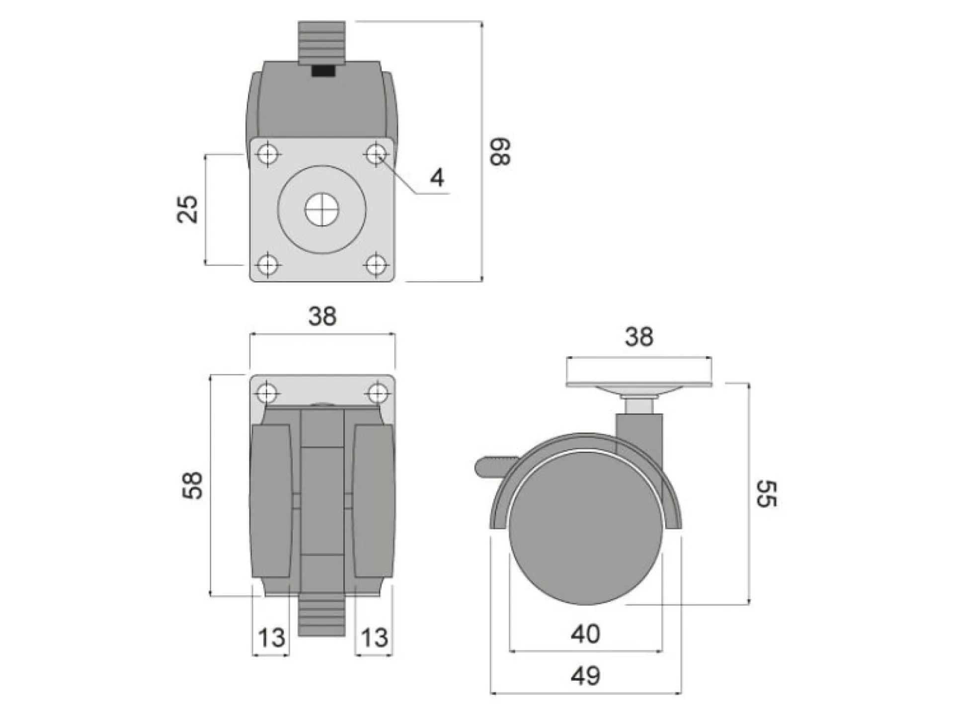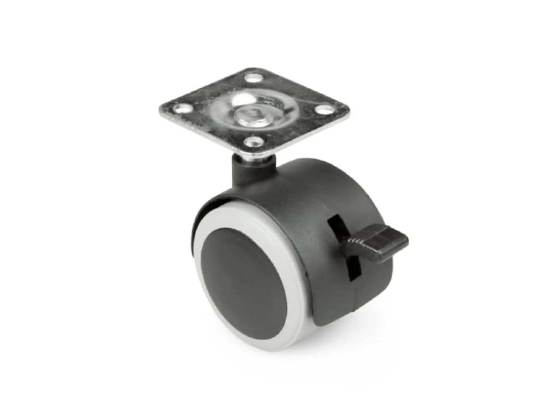 Gumový povrch kolieska zaisťuje tichý a plynulý pohyb bez poškodenia podlahy. Kovová konštrukcia poskytuje dlhú životnosť a stabilitu, zatiaľ čo integrovaná nožná brzda umožňuje bezpečné zafixovanie nábytku na mieste.