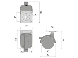 Otočné gumové koliesko s montážnou doštičkou a brzdou