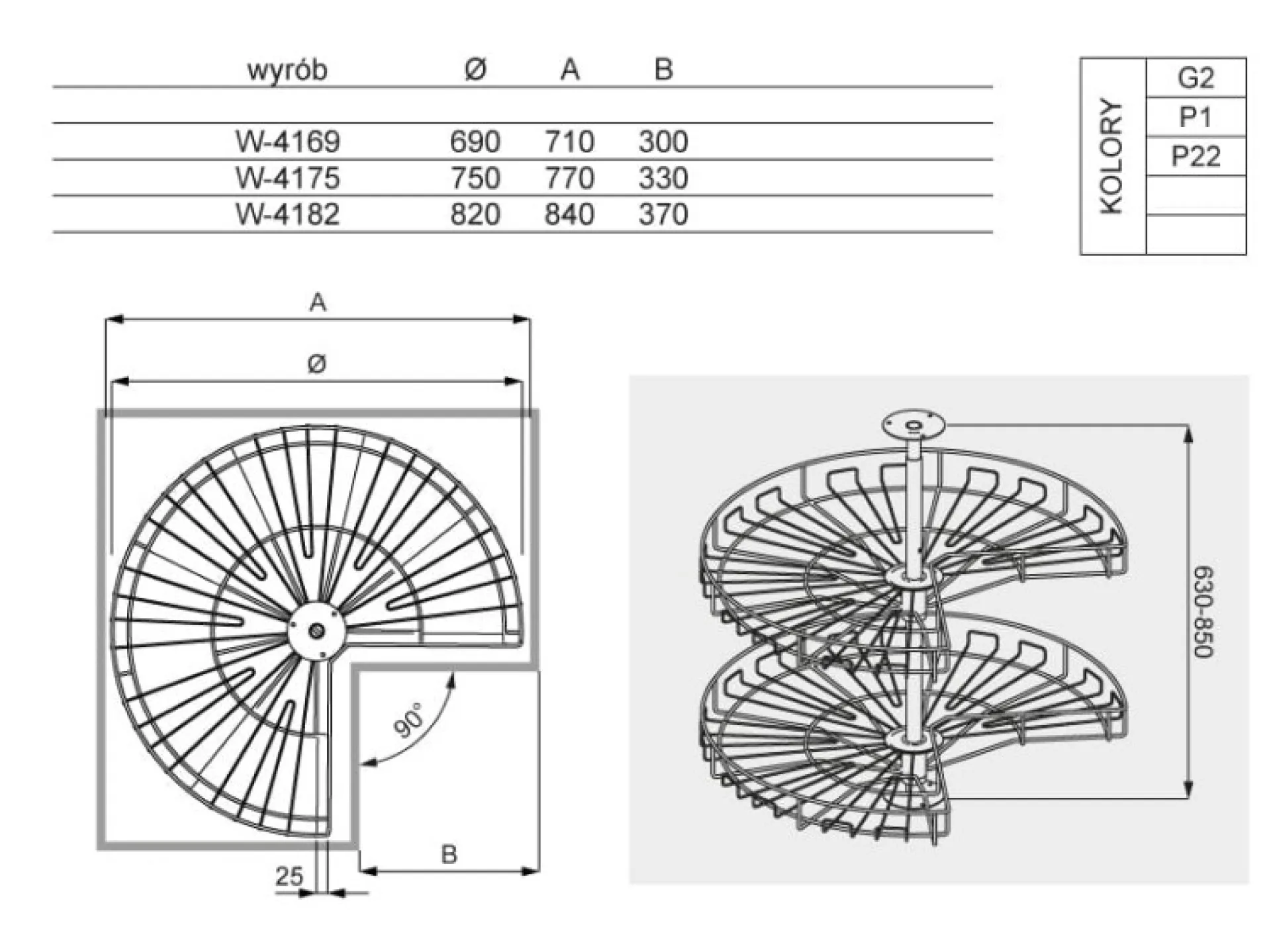Otočný kôš 3/4 – línia STANDARD
