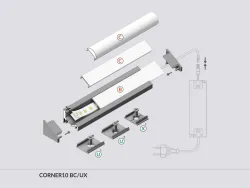Hliníkový profil k povrchovej montáži do rohu. Povrchová úprava - hliník elox. Určený pre LED pásiky o max. šírke 10mm. Dĺžka 2000mm. Krycie lišty (typ C) a koncovky nie sú súčasťou balenia, je potrebné ich zakúpiť samostatne.