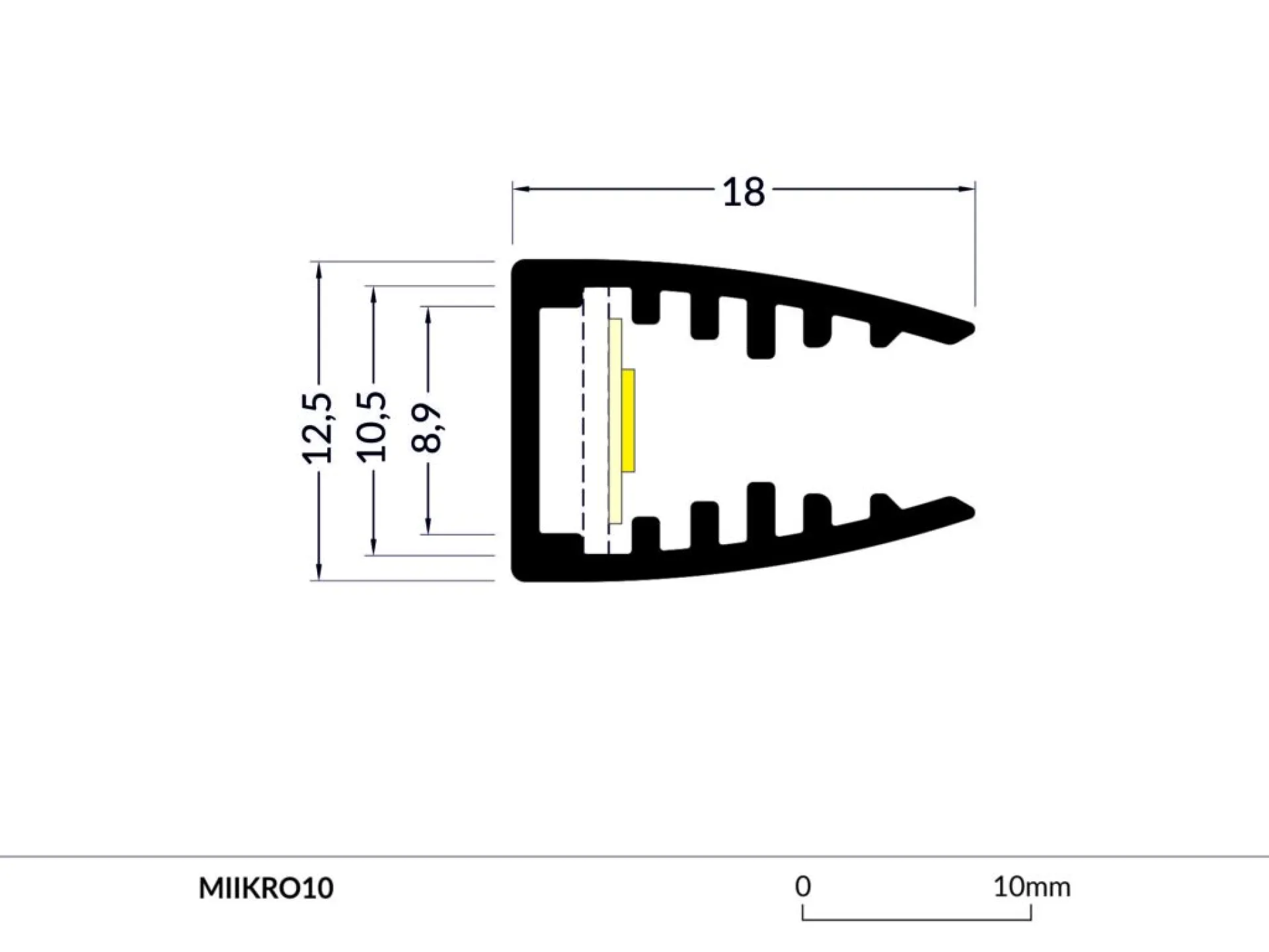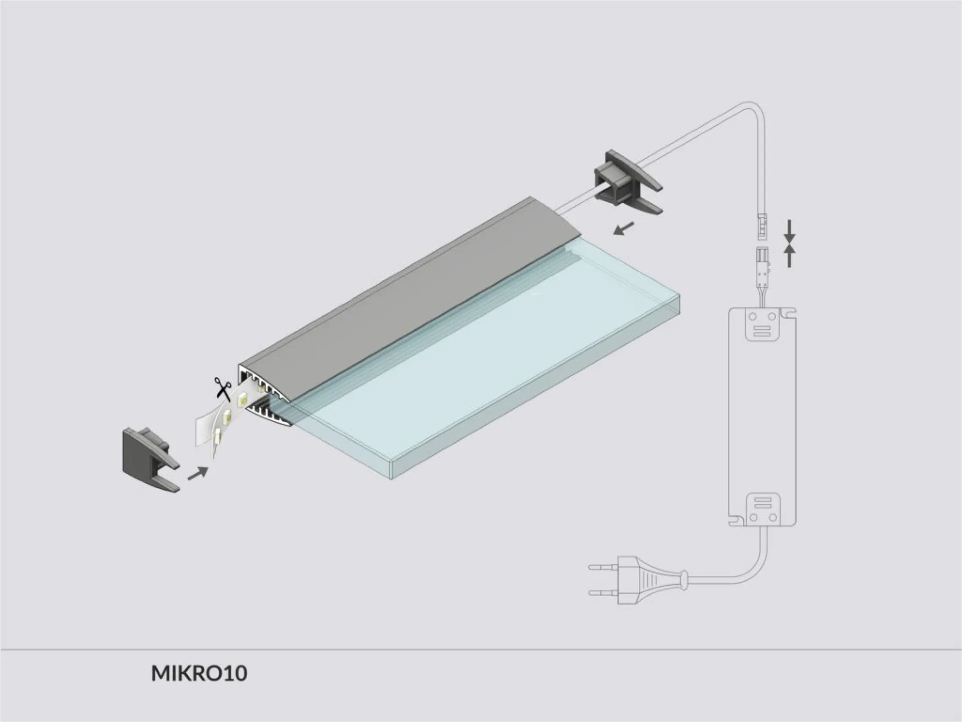 Profil pre nasvietenie sklenených políc s hrúbkou skla 6mm. Do lišty Mikro 10 vsuniete led pás nalepený na profil, ktorý je súčasťou balenia.