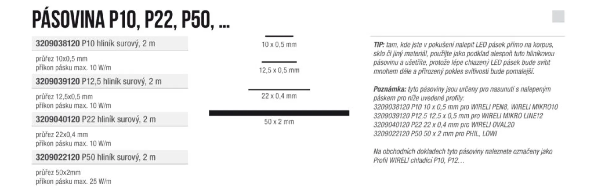 Podkladová pásovina slouží jako jednoduchý montážní a chladící profil v případech, kdy v konkrétní aplikaci nehrozí nebezpečí mechanického zničení pásku nebo zaprášení.