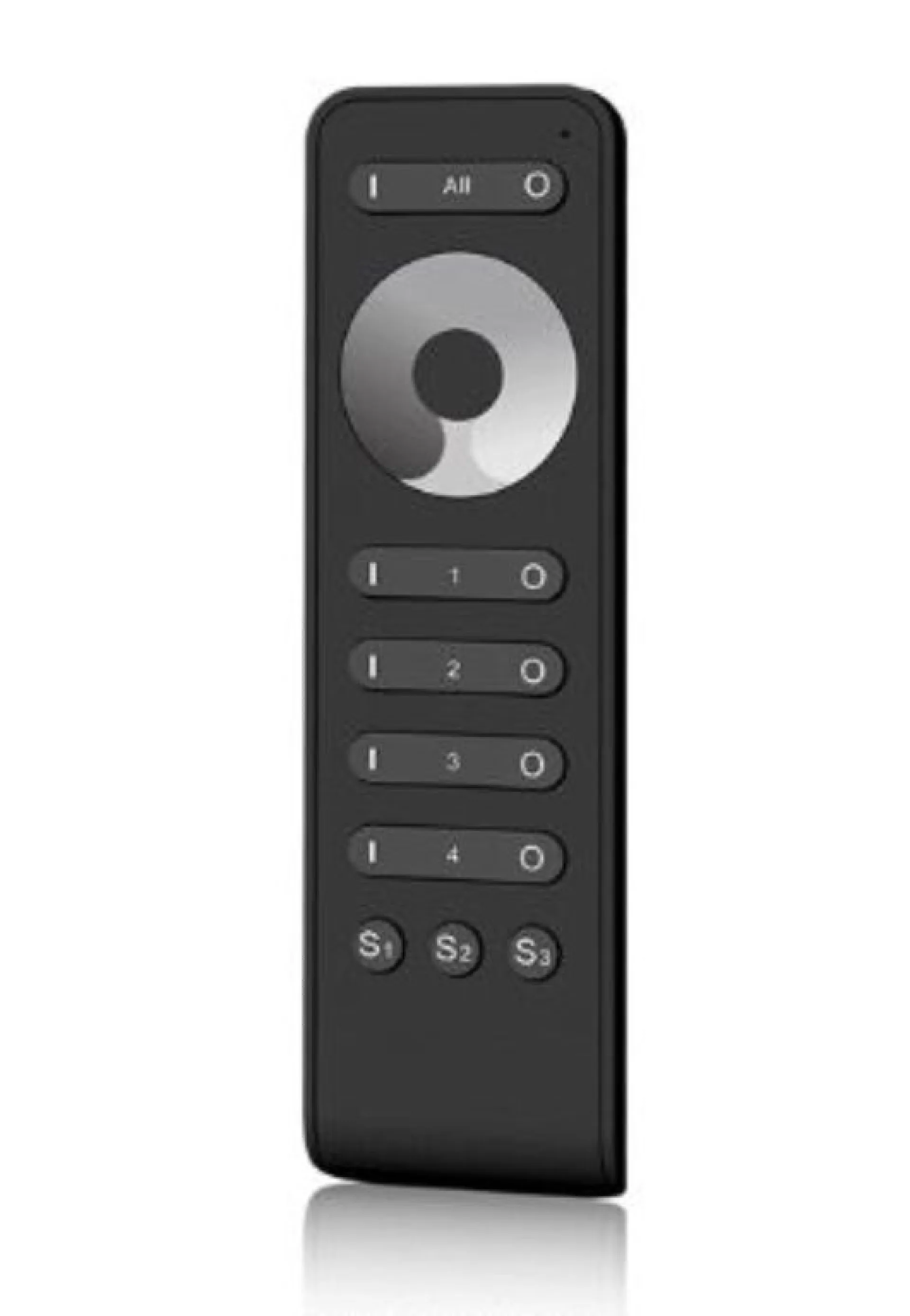 Diaľkový LED ovládač jasu (stmievač) až pre 4 zóny pre jednofarebné LED pásiky. Ovládač funguje na vzdialenosť až 30 metrov. Ku každej zóne je potrebné zakúpiť prijímač W-3204000535