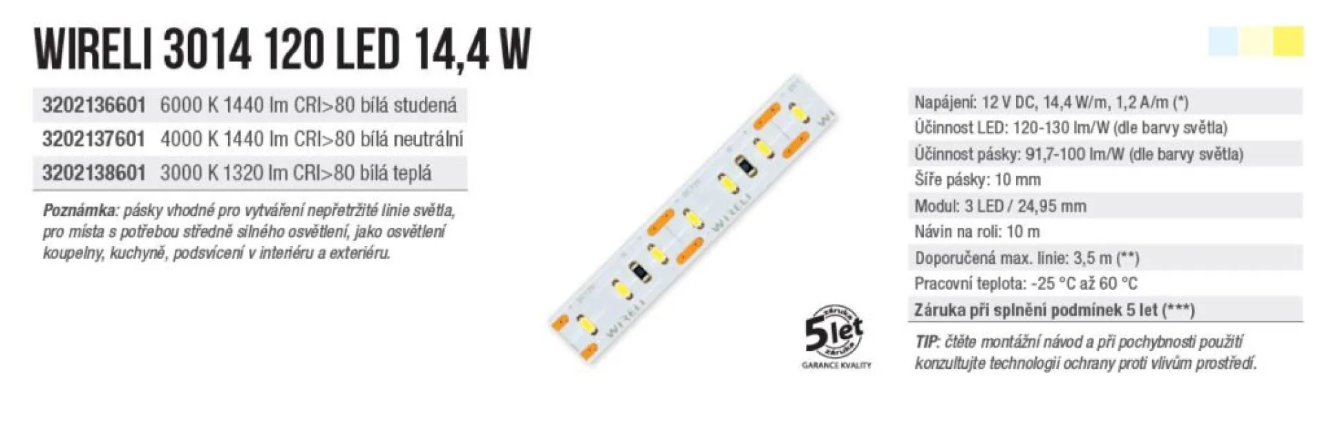 Značkový LED pásik WIRELI s vysokou kvalitou a dlhou životnosťou.