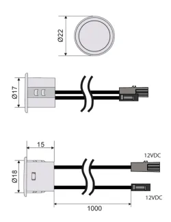 Rozměry : d22mm, výška 16,5mm, zapuštění 15mm, přesah 1,5mm