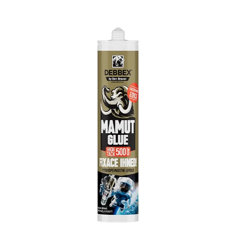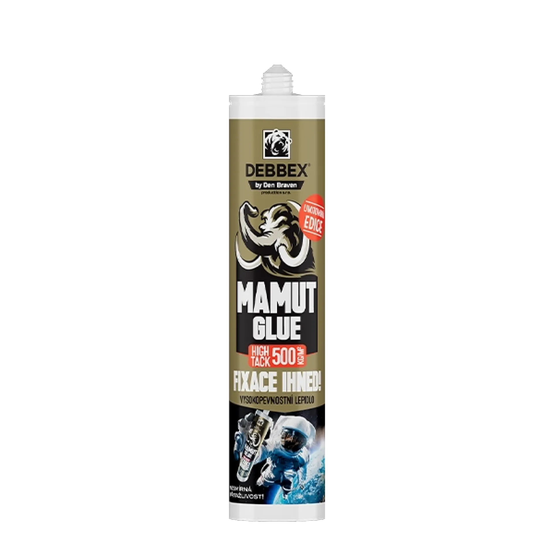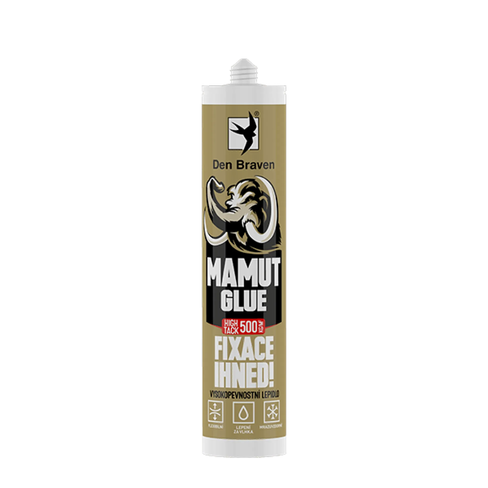 Jeho najväčšou výhodou je okamžitá fixácia 500 kg/m2. Využijete ho všade tam, kde potrebujete niečo rýchlo prilepiť a nemôžete predmet z akýchkoľvek dôvodov zaťažiť, kým lepidlo vytvrdne. S tým súvisí jeho tuhšia konzistencia. Lepidlo MAMUT GLUE High Tack nahrádza klince, skrutky a nity. Jedná sa o špeciálnu modifikáciu MS polymérov, vytvárajúcu po vytvrdnutí pretierateľný vysokopevnostný a elastický spoj. Nie je agresívny k podkladom, je ideálny na lepenie zrkadiel.