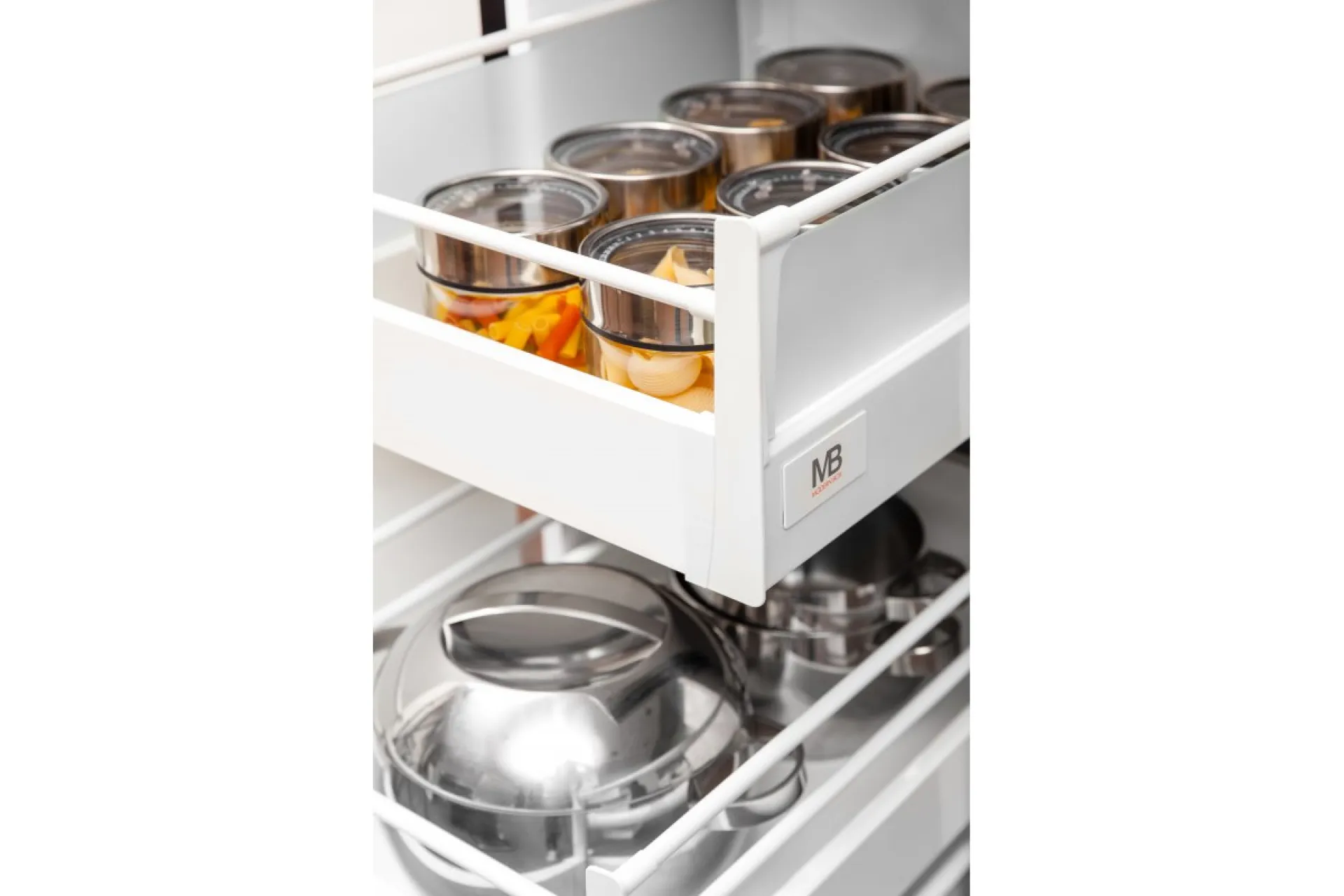Modern Box má vysokú odolnosť, certifikovaný je pre 60 000 cyklov. Poskytuje zaťaženie až 40 kg a plný výsuv v dĺžkach od 250 do 550 mm. Dostupný v troch výškach ako pre klasickú tak aj vnútornú zásuvku. Vysoký komfort produktu je zabezpečený tichým zatváraním. Zásuvka sa hodí pre celý rad systémov organizácie priestorov, príborových vložiek, rohoží a triedičov odpadu.