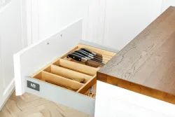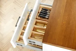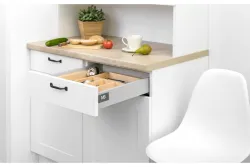 Modern Box má vysokú odolnosť, certifikovaný je pre 60 000 cyklov. Poskytuje zaťaženie až 40 kg a plný výsuv v dĺžkach od 250 do 550 mm. Dostupný v troch výškach ako pre klasickú tak aj vnútornú zásuvku. Vysoký komfort produktu je zabezpečený tichým zatváraním. Zásuvka sa hodí pre celý rad systémov organizácie priestorov, príborových vložiek, rohoží a triedičov odpadu.