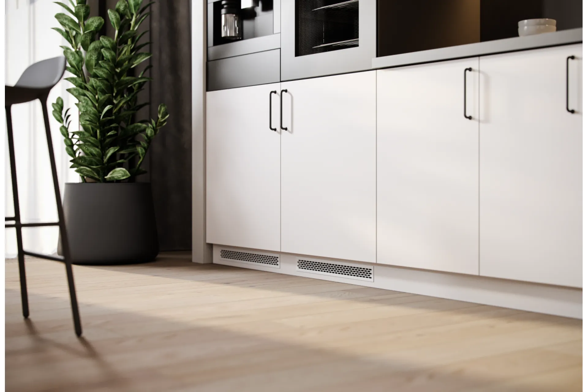 Hliníková ventilačná mriežka sa používa na odvetranie vstavaných spotrebičov v kuchyni a kúpeľni. Zaisťuje správnu cirkuláciu vzduchu, zabraňuje prehriatiu nábytku a usadzovaniu vlhkosti v jeho štruktúre. Ventilačná mriežka je vhodná na inštaláciu do nábytku, nedá sa však použiť do stien a vetracích potrubí.