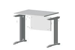 Kancelárska noha s výškou 725 mm a hĺbkou 600 mm. Dierovaný káblový tunel spája hornú a spodnú časť. Spodná časť má nastaviteľné nožičky. Umožňujú nastaviť výšku nohy v rozsahu 10 mm. Noha je vyrobená z ocele a pokrytá strieborným lakom.