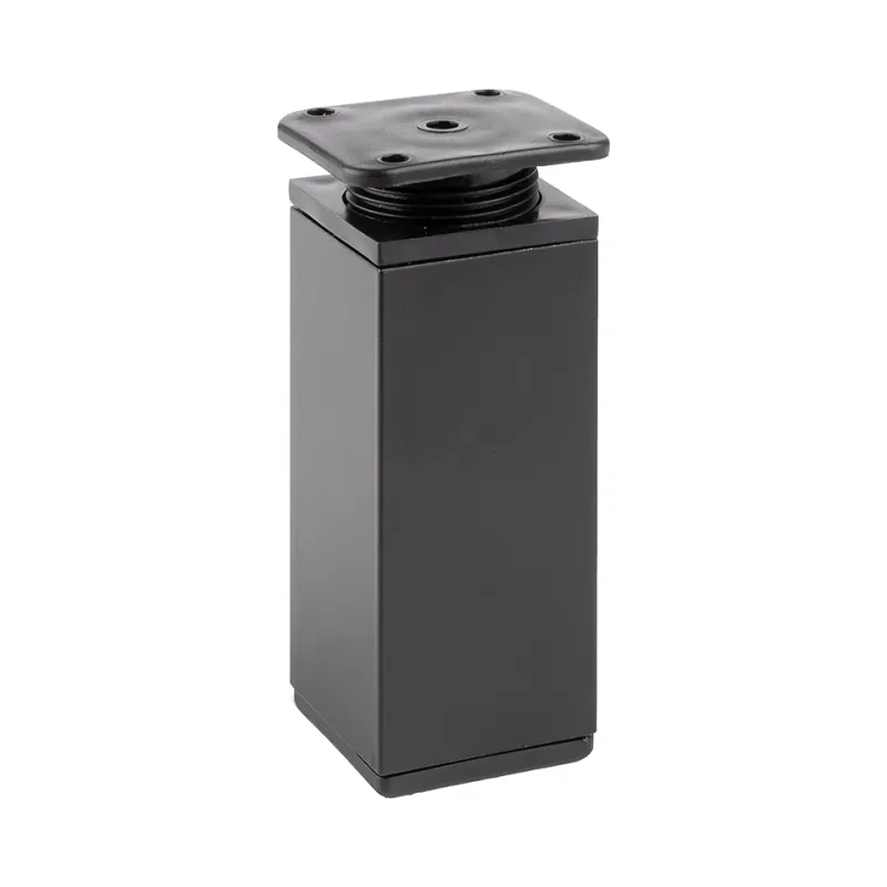 Nábytková štvorcová noha hliníková, povrchová úprava: čierna matná. Rozmer: 40x40 mm. Výška 100 mm, Rektifikácia +15 mm.