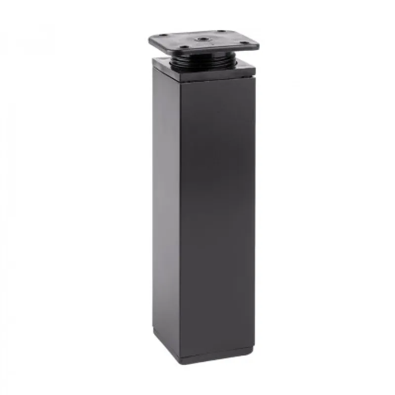 Nábytková štvorcová noha hliníková, povrchová úprava: čierna matná. Rozmer: 40x40 mm. Výška 150 mm, Rektifikácia +15 mm. Koncovky - plast čierný