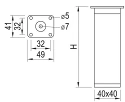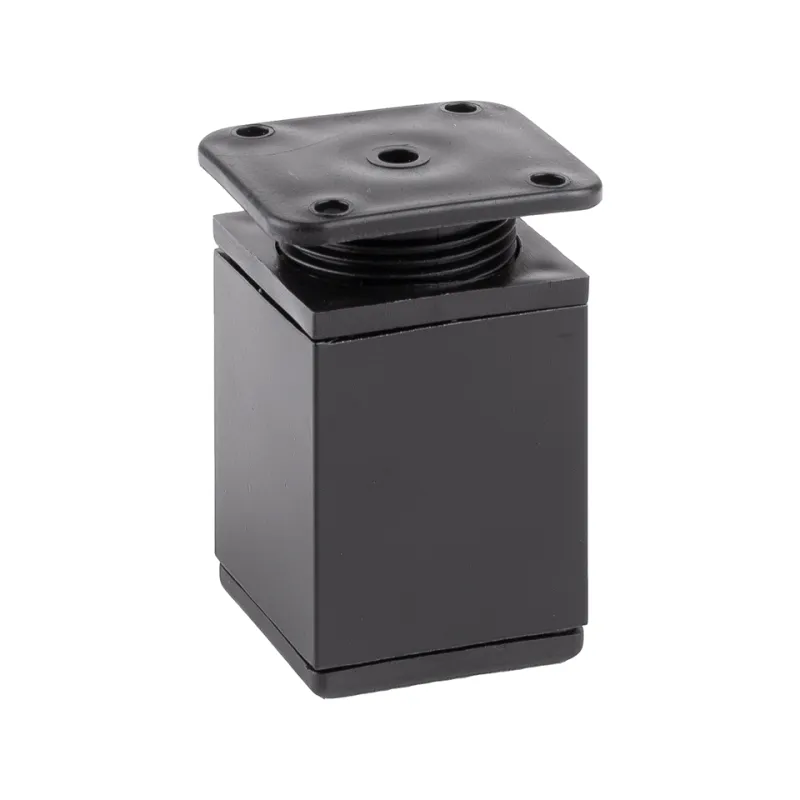 Nábytková štvorcová noha hliníková, povrchová úprava: čierna matná. Rozmer: 40x40 mm. Výška 60 mm, Rektifikácia +15 mm.