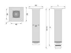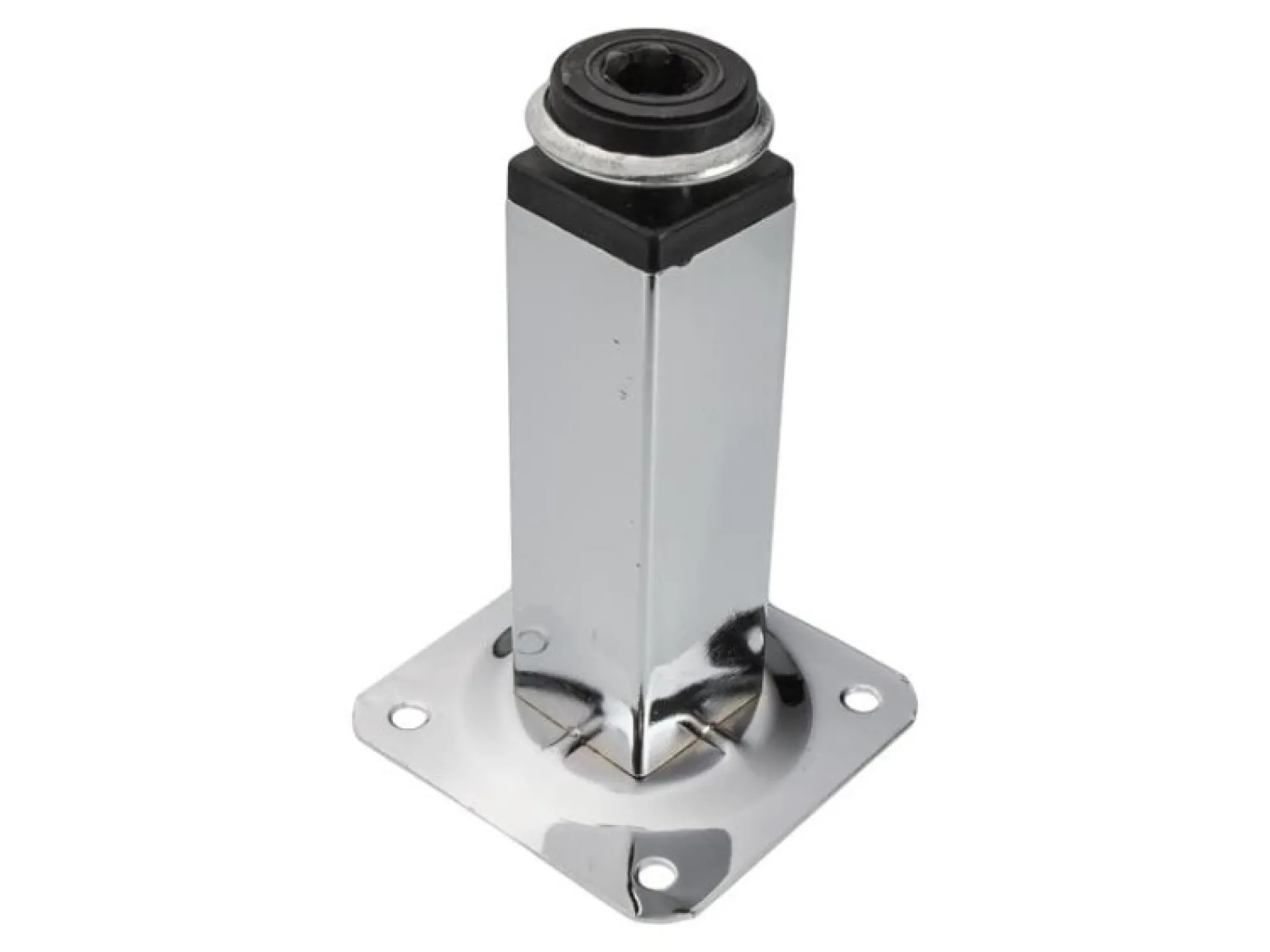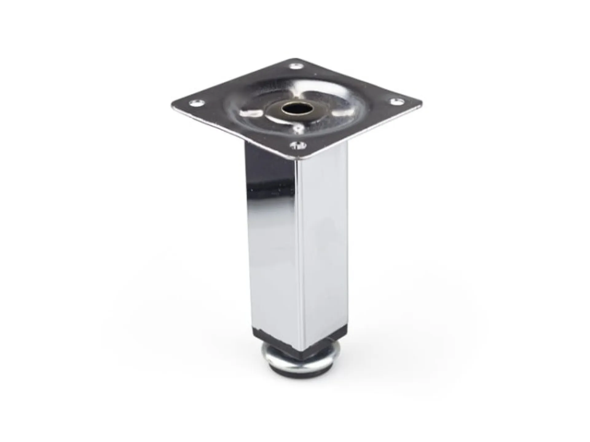 Štvorcová oceľová nábytková noha DN-738 H-100 s nastaviteľnou výškou – lesklý chróm
