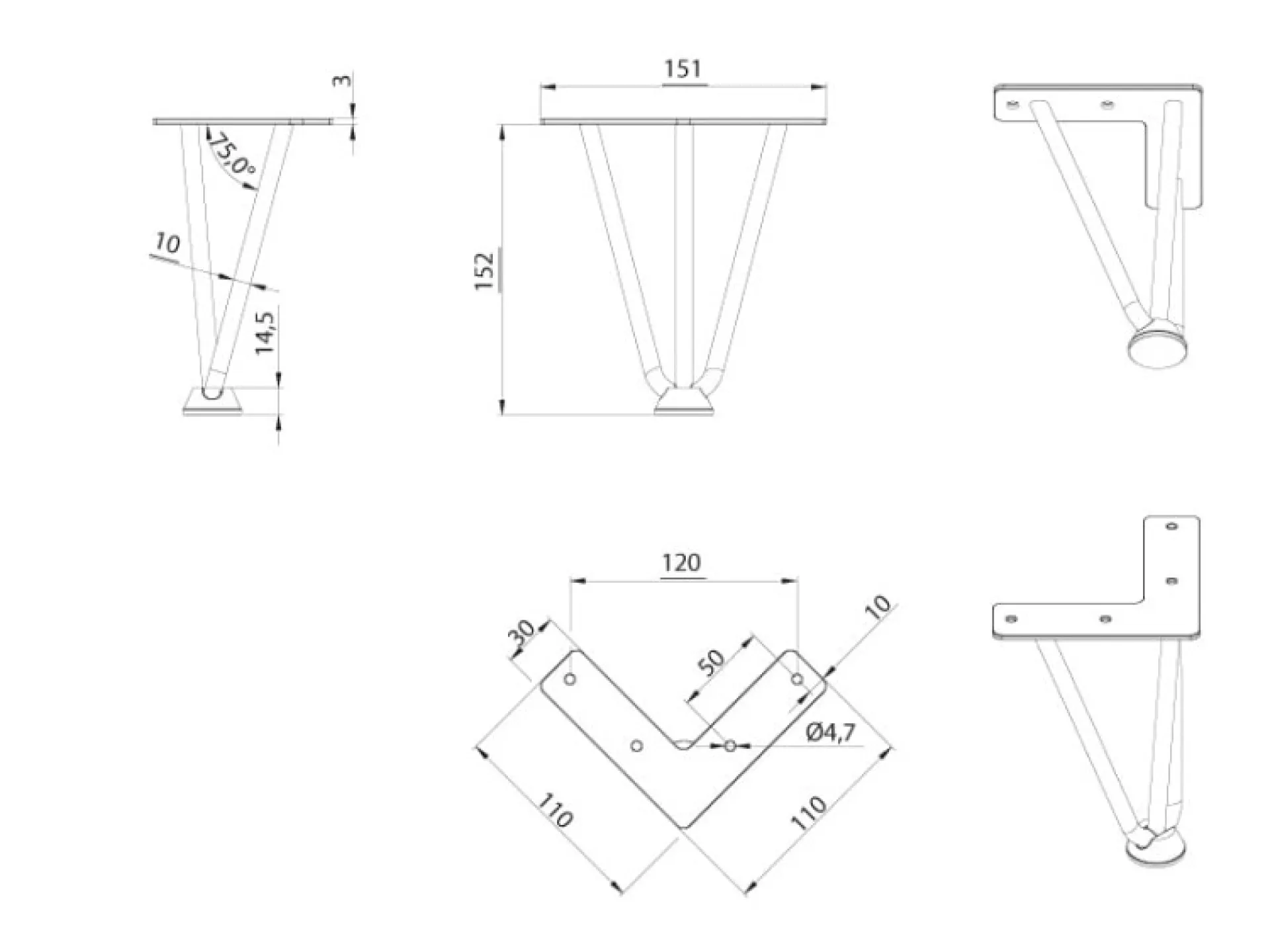 Vďaka svojmu jedinečnému, šikmému tvaru je noha DN-803 vhodná ku komodám a skrinkám.