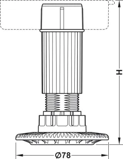 Robustný soklový systém s veľkou nohou. Nastaviteľné z bočnej strany a zhora v rozsahu −7 až +20 mm pomocou nastavovacieho nástroja AXILO™. Potrebné dokúpiť montážnu prírubu.