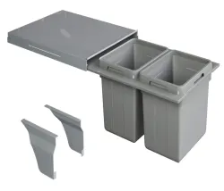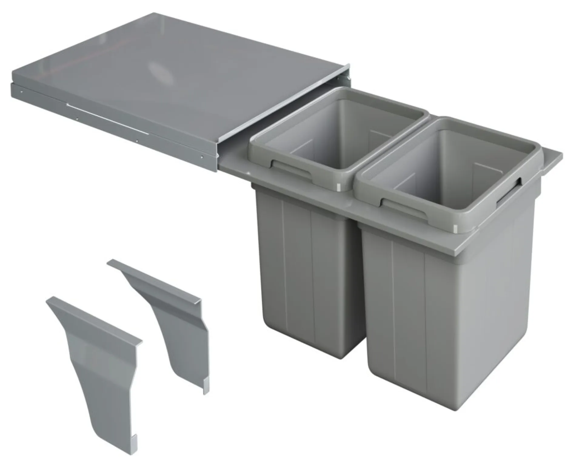 Plastový odpadkový 2-kôš Elegance na separáciu a triedenie domáceho odpadu do korpusu 400 mm s montážou na zásuvku typu ANTARO.