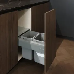 Systém má dve 18-litrové nádoby a je vybavený pevným oceľovým vekom, ktoré okrem zakrytia košov slúži aj ako polica vo vnútri korpusu na uloženie ľahkého príslušenstva.