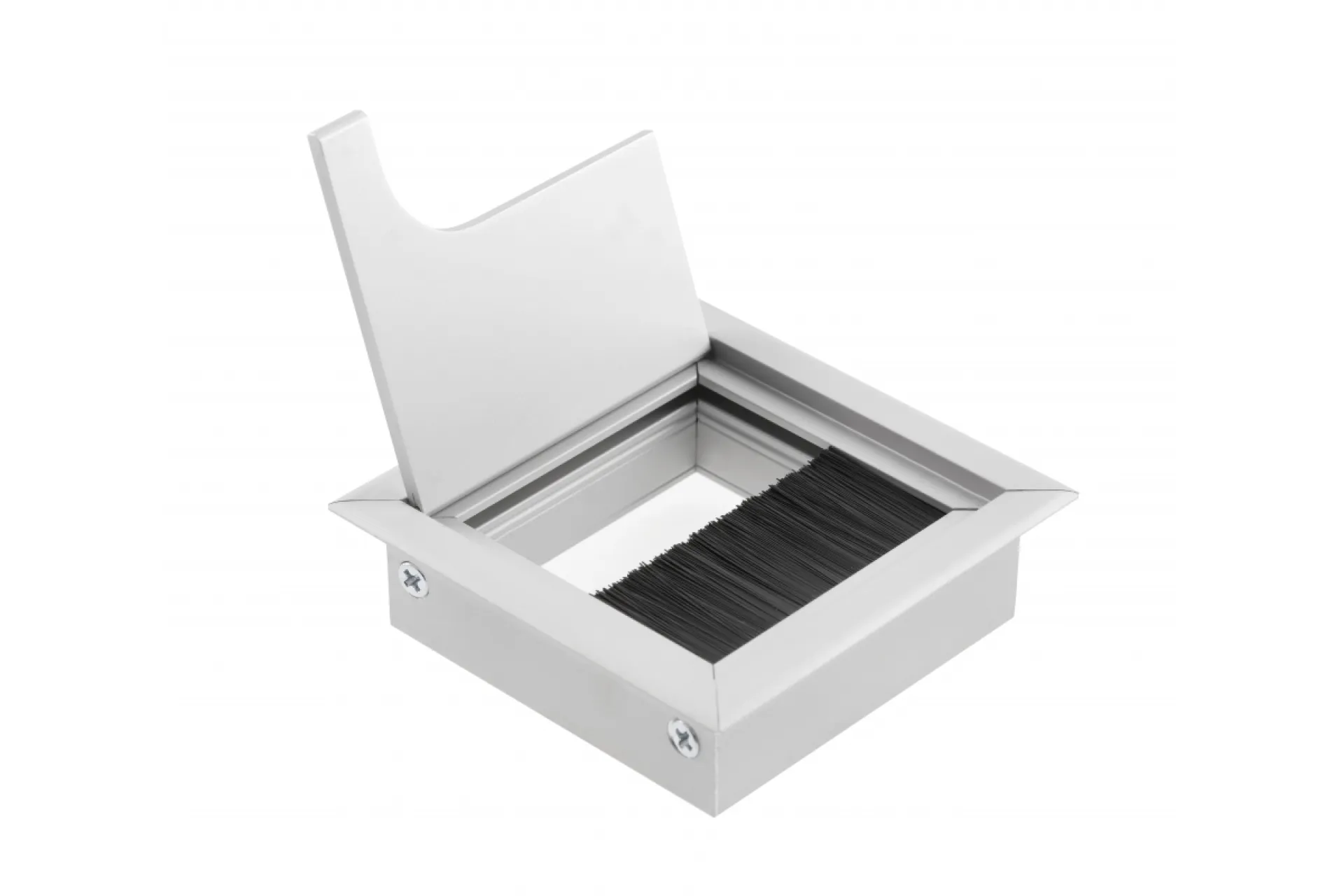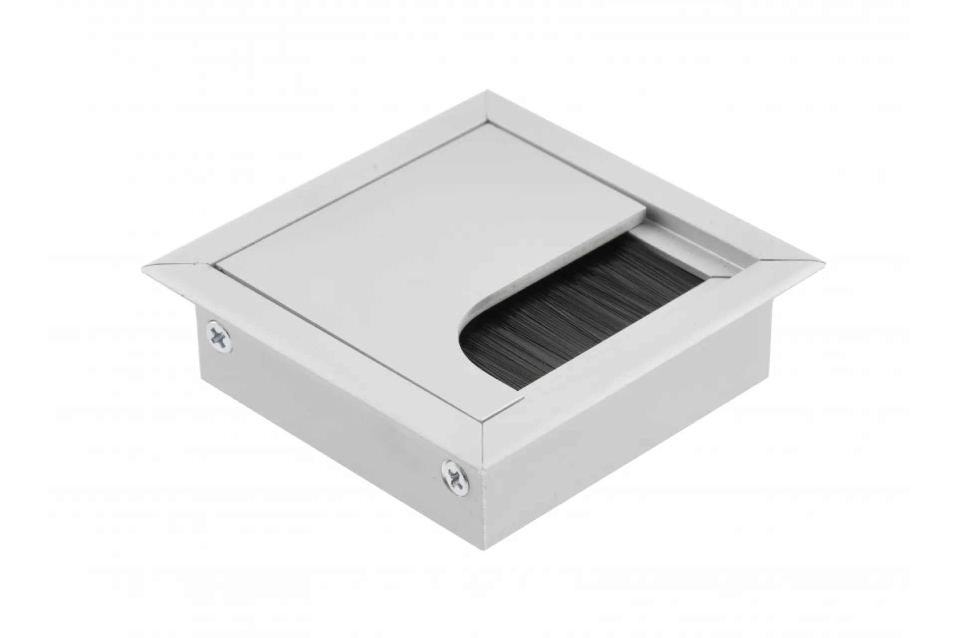 Káblová priechodka MERIDA s hranatým prierezom z hliníka, dostupná v dvoch veľkostiach a dvoch univerzálnych farbách. Priechodka je určená na inštaláciu do pracovnej dosky alebo nábytku. Je vybavená otváracím vekom a maskovacou kefou, ktoré chránia pred prachom a zaisťujú pohodlie pri používaní.
