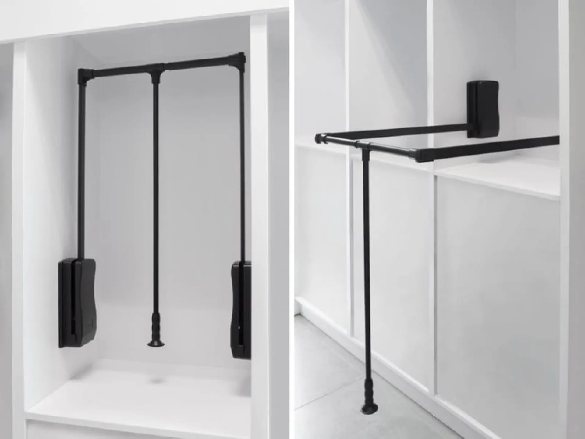 Pantograf je funkčné riešenie, ktoré umožňuje maximálne využitie priestoru vo veľkých skriniach. Vďaka jednoduchému mechanizmu zdvíhania a spúšťania tyče je prístup k vyššie zavesenému oblečeniu mimoriadne pohodlný. Po spustení tyč zostáva stabilne v zvolenej polohe, čo uľahčuje vešanie aj vyberanie odevov.
