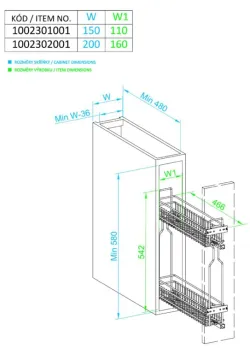 Plnovýsuvný kôš WIRELI Komfort s bočnou montážou vpravo predstavuje praktický a technicky prepracovaný úložný systém, určený pre spodné kuchynské skrinky so šírkou 200 mm. Vďaka svojej štíhlej konštrukcii a dvojúrovňovému vyhotoveniu ponúka efektívne využitie úzkeho priestoru, ktorý by inak zostal nevyužitý.