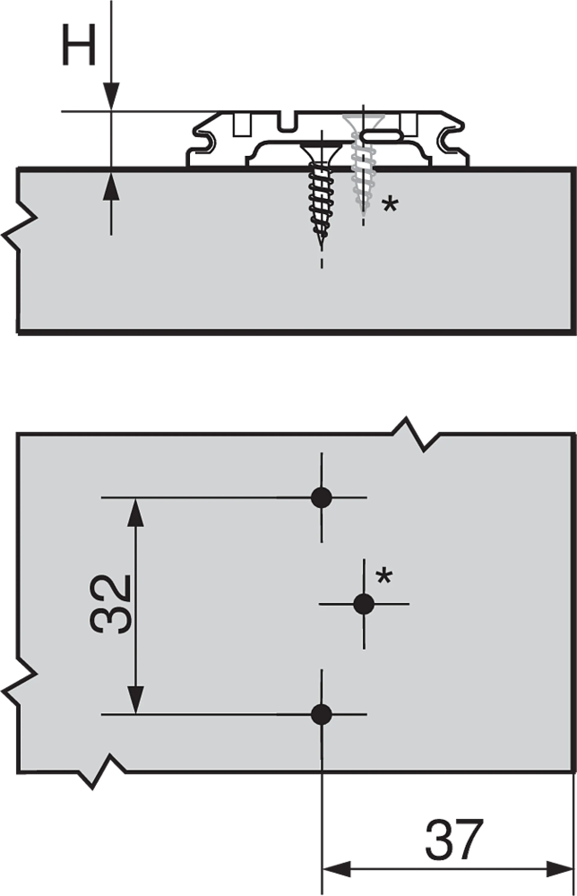 Upevnenie: na naskrutkovanie pre skrutky do drevotrieskovej dosky