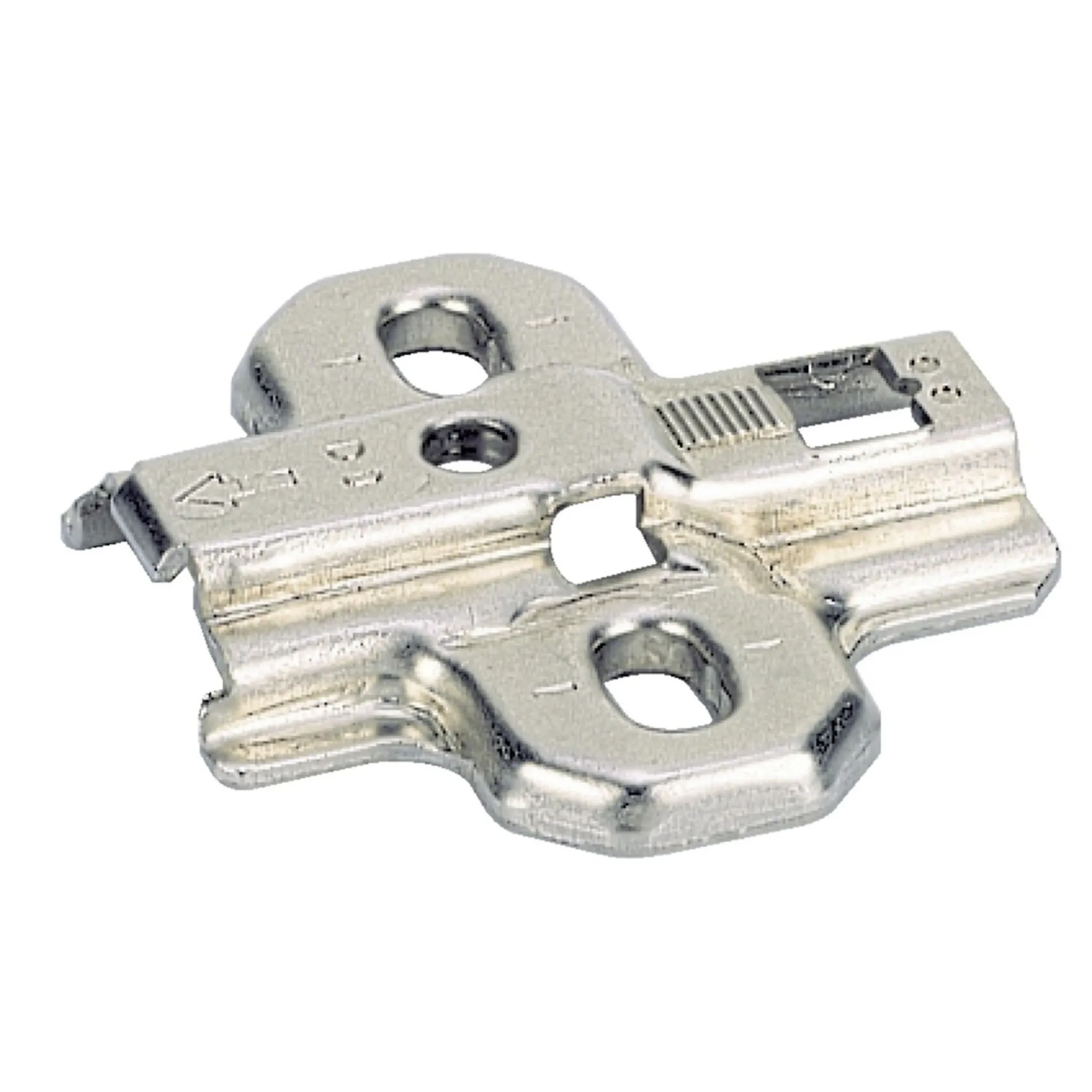 Montažná podložka pre klipový záves Intermat a Ecomat k našrubovaniu skrutkou so zápustnou hlavou. Ovalné otvory pro výškove nastavenie +-2mm