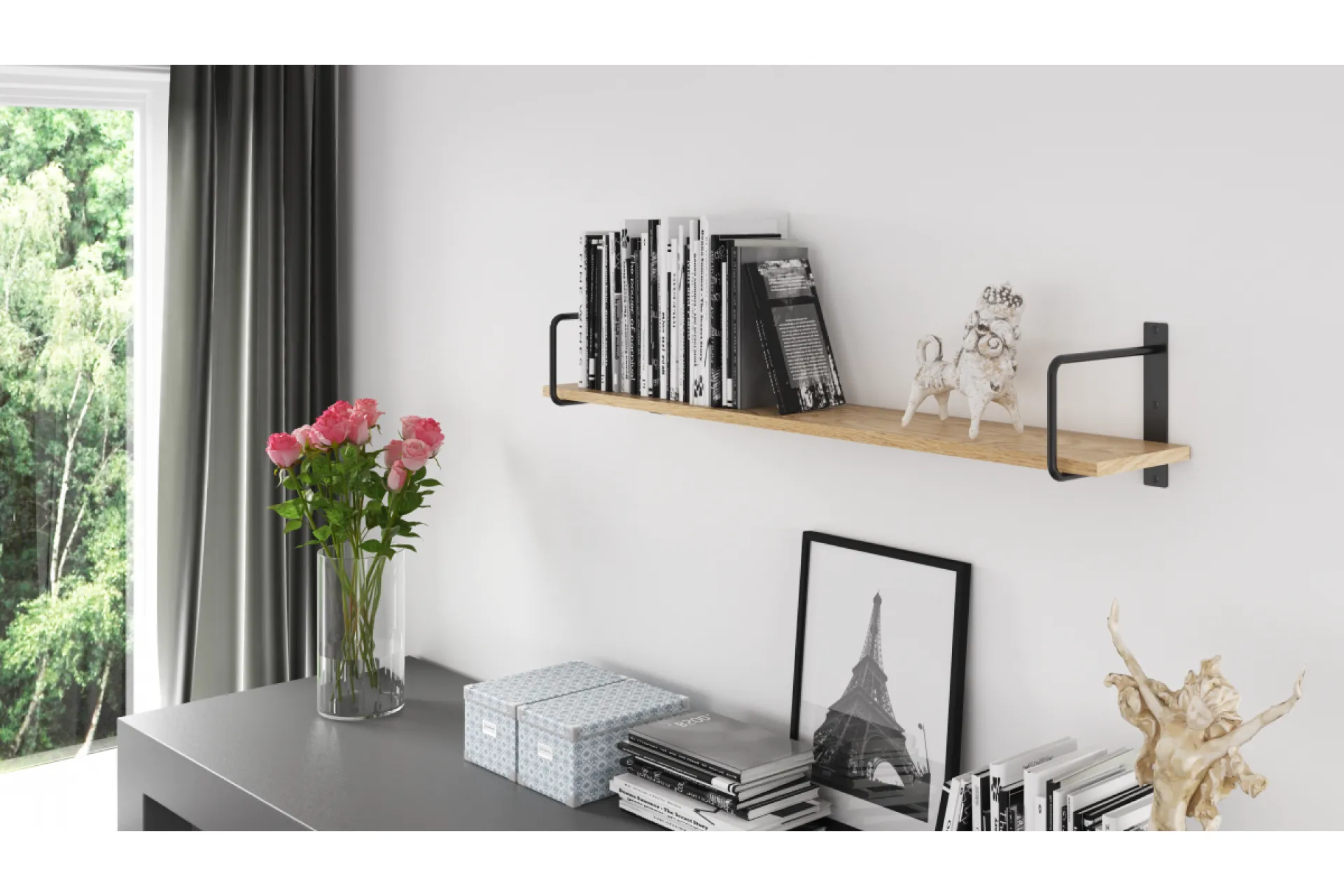 Moderná, elegantná podpera BELT je ideálna pre atmosférické interiéry, napr. v mestských, elegantných a vintage štýloch. Nosnosť 30 kg.