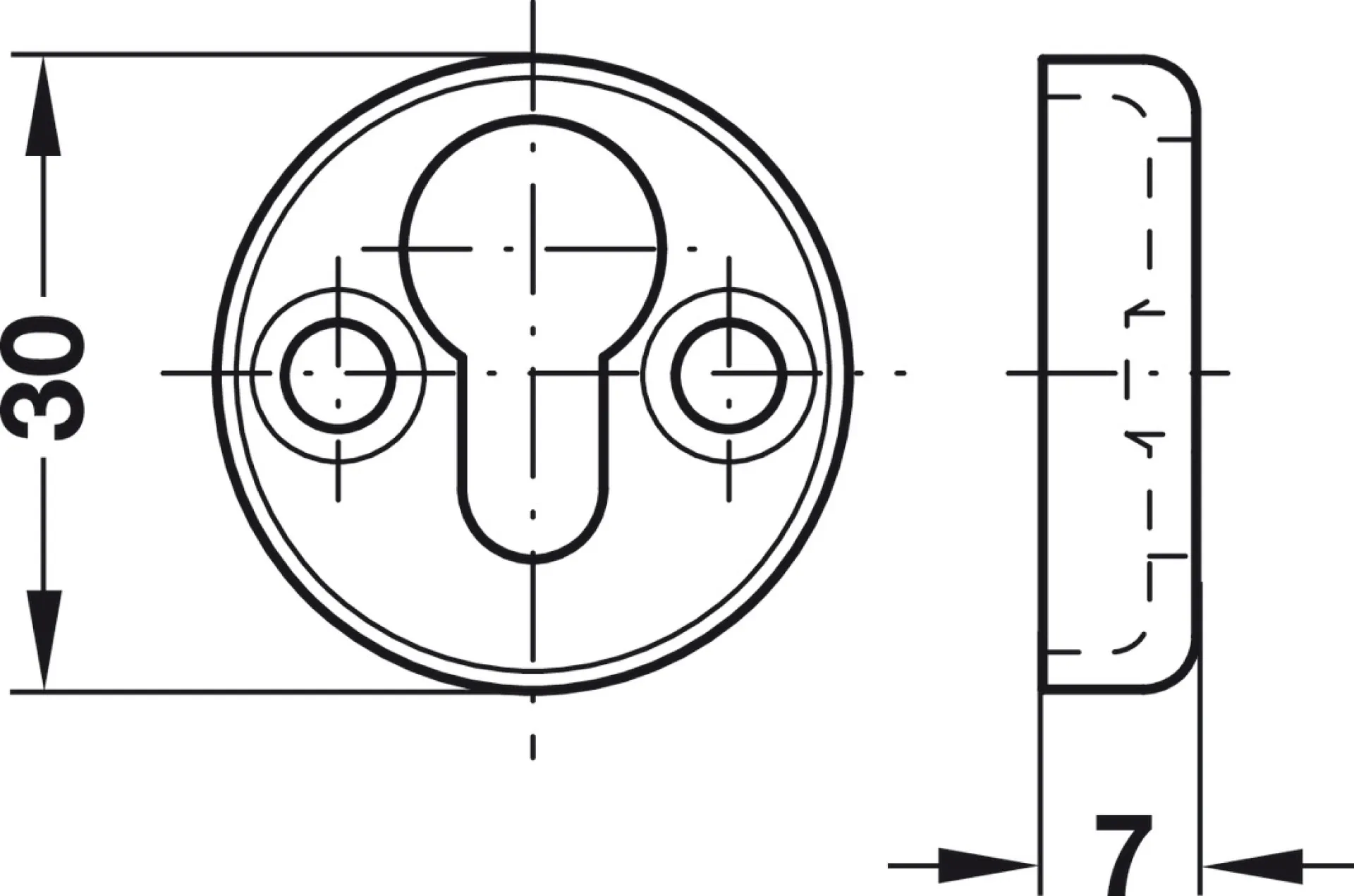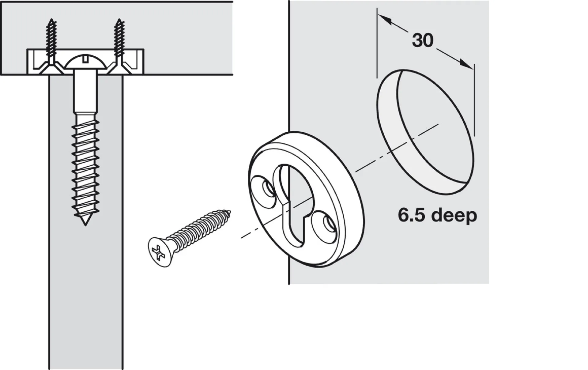 Závesné bajonetové kovanie. Priemer 30 mm. Hrúbka 7 mm.