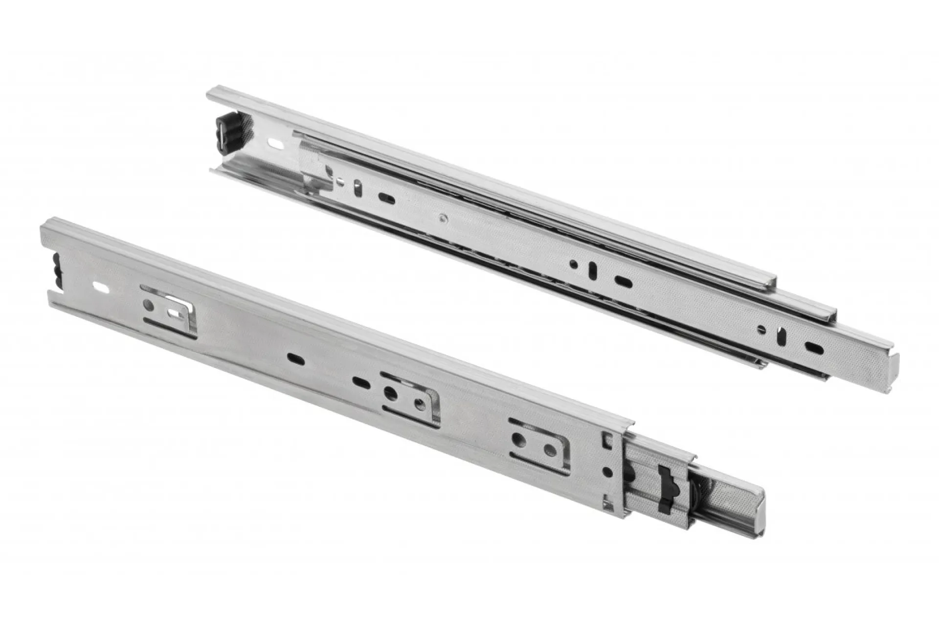Guľôčkové vedenie vyrobené z nehrdzavejúcej pozinkovanej ocele. Funkcia plného výsuvu umožňuje pohodlný prístup k hlbokým miestam v zásuvke. Odolnosť výrobku je certifikovaná na 60 000 cyklov a odoláva zaťaženiu až 30 kg. Výška výsuvu je 45 mm.