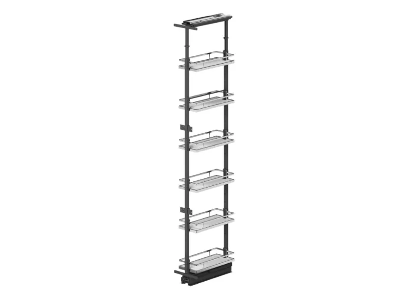 Tento sofistikovaný systém ponúka pohodlný a prehľadný prístup ku všetkým uloženým potravinám naraz a umožňuje maximálne využitie dostupného priestoru s ohľadom na individuálne potreby každej kuchyne. Vďaka plnovýsuvnému mechanizmu s tlmeným dovieraním sa koše vysúvajú plynulo, ticho a bezpečne – aj pri plnom zaťažení. Kvalitné výsuvy zabezpečujú stabilný a komfortný pohyb celej zostavy pri každodennom používaní.