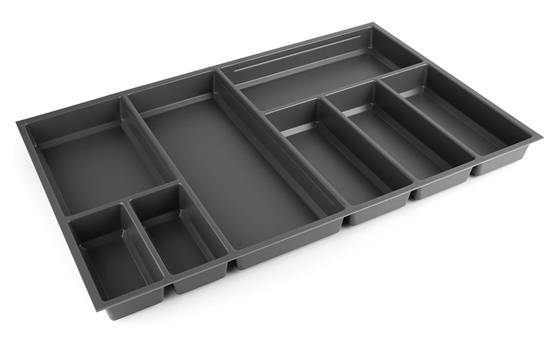 Príborník SKY ideálny pre zásuvky s tenkými bočnicami (Axis Pro, StrongMax, Blum Legrabox). Možnosť dokúpiť deliace prepážky, držiaky nožov a rezačku fólií.