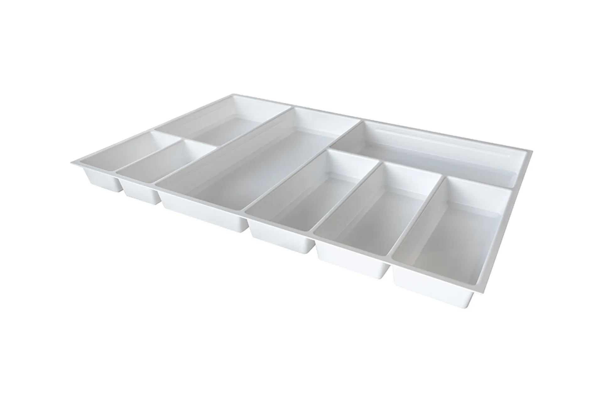 Príborník SKY ideálny pre zásuvky s tenkými bočnicami (Axis Pro, StrongMax, Blum Legrabox). Možnosť dokúpiť deliace prepážky, držiaky nožov a rezačku fólií.