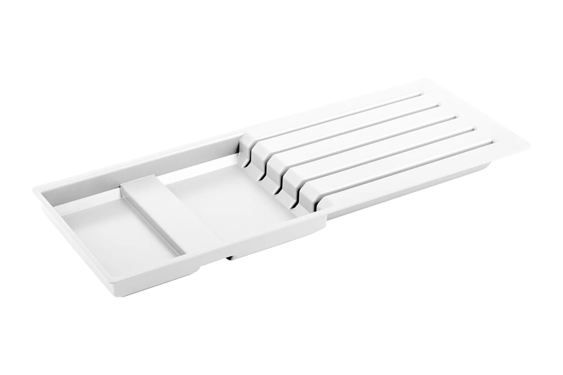 Plastový držiak na nože na vloženie do príborníka SKY od šírky príborníka pre 60 cm zásuvku. Farba biela.