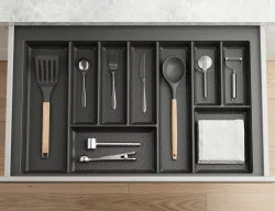 Príborníky STAR sú vyrobené z odolného plastu s jemnou štruktúrou, čo z nich robí elegantný doplnok vašej kuchyne. Vďaka dostatočne širokým okrajom pohodlne vyplníte každú zásuvku. Stačí si zmerať vnútorný rozmer zásuvky a okraje odrezať podľa vašich preferencií.