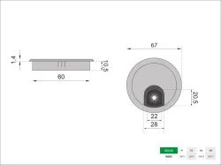 Priechod je navrhnutý pre montážne otvory s priemerom 60 mm, vďaka čomu je kompatibilný s väčšinou štandardných pracovných dosiek a stolov. Presné rozmery umožňujú jednoduchú a bezproblémovú inštaláciu.