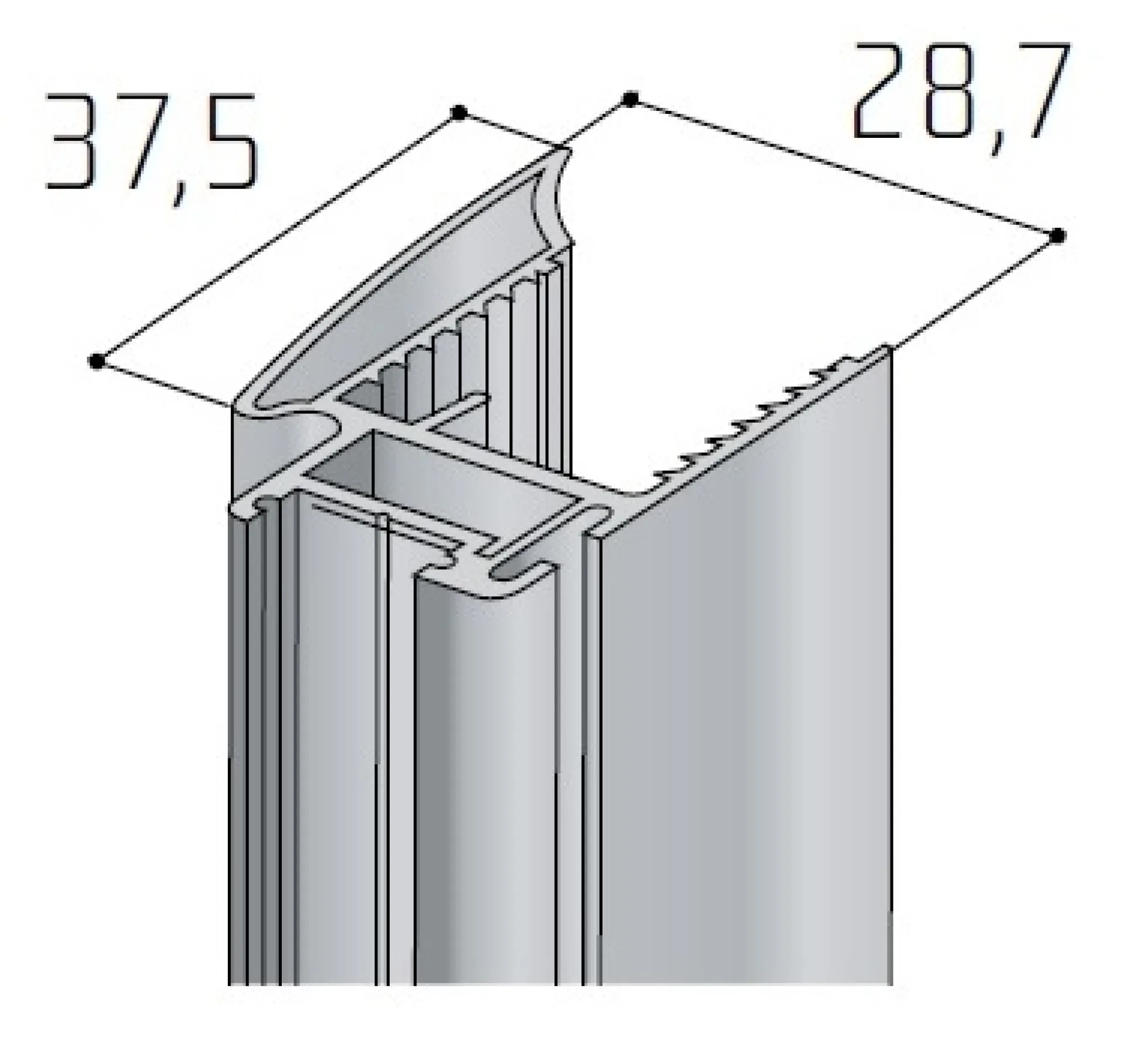 Vhodné do rámového systému S65. Možné použiť širokú štetinu bez krycieho profilu alebo úzku štetinu s krycím profilom. Krycí profil nie je súčasťou a je treba ho objednať samostatne.