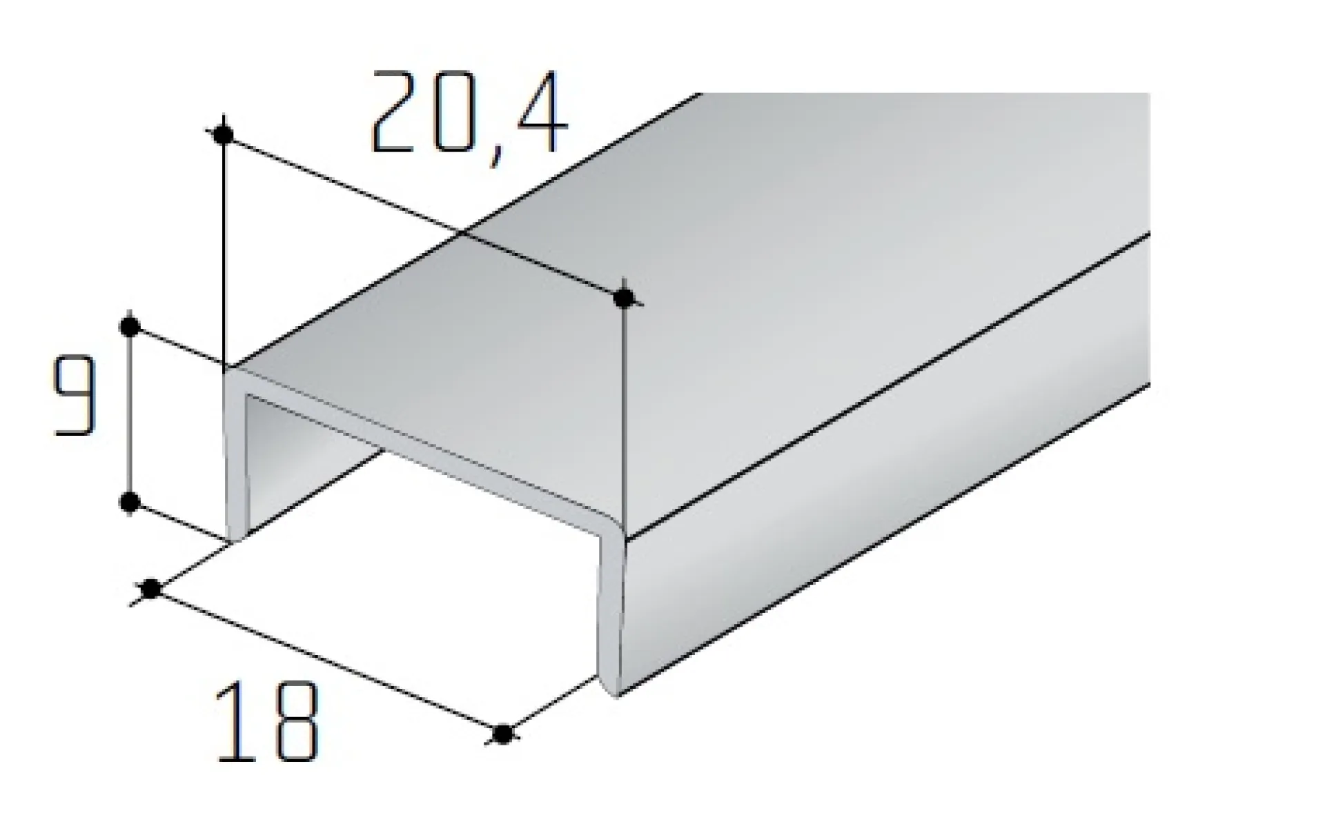 Ukončovací profil na dosku o hrúbke 18 mm.