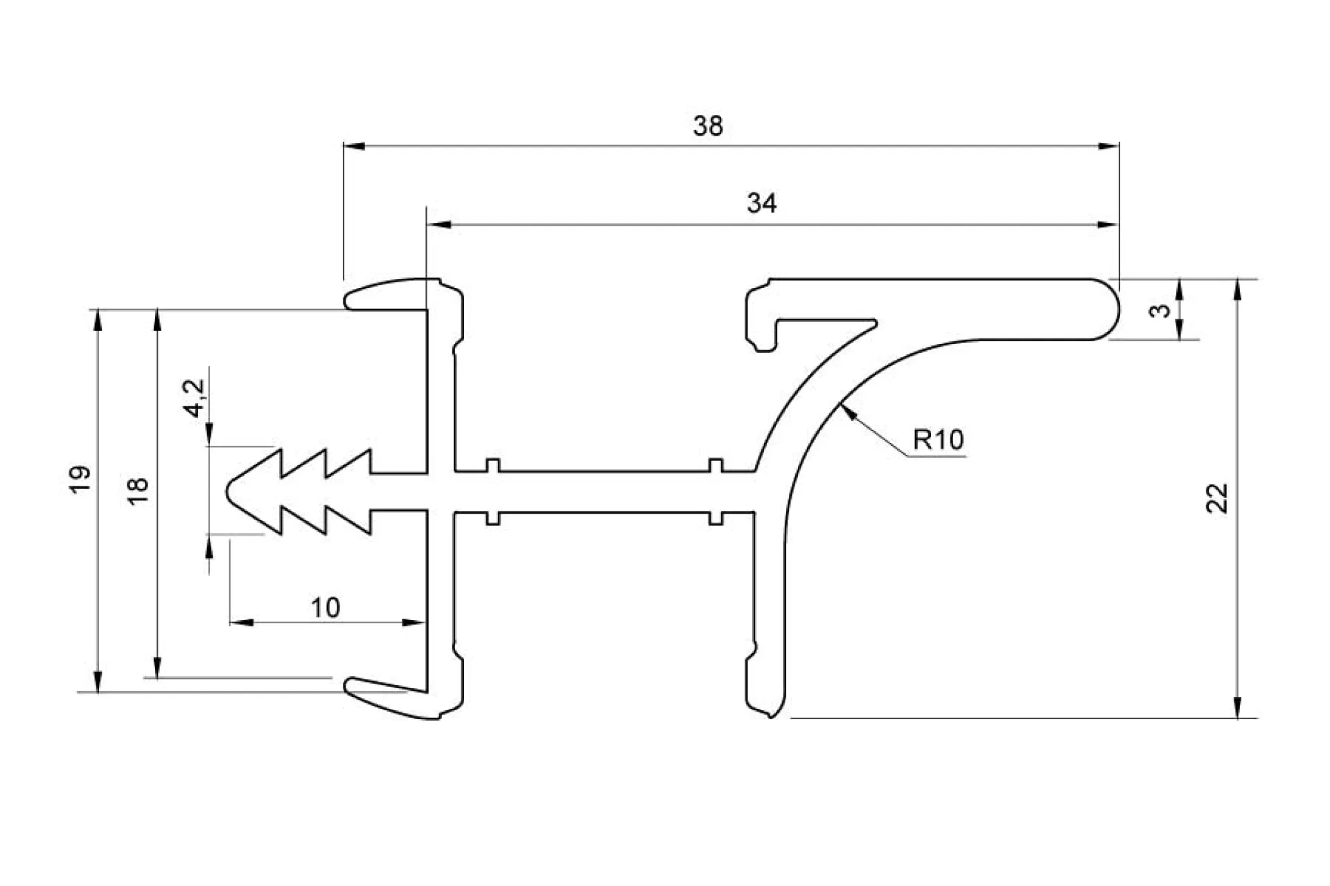 Úchytkový profil UK20 Doppel pre odsadenie dvierok. Montáž do spodného dna. Profil obsahuje dve drážky pre led pás + dva mliečne difúzory.